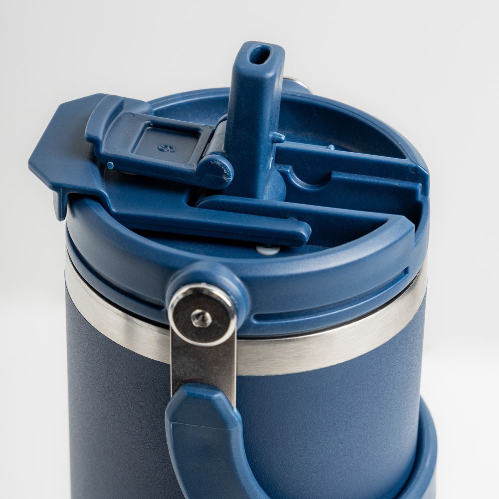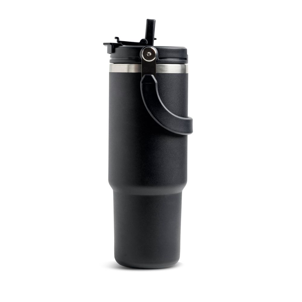 Kubek termiczny ze stali nierdzewnej o pojemności 900 ml z podwójnym wieczkiem dla lepszego uszczelnienia i skutecznej izolacji termicznej. Utrzymuje temperaturę napojów – zarówno ciepłych, jak i zimnych – przez wiele godzin, co czyni go idealnym do codziennego użytku, do pracy, na siłownię czy w podróży. Dzięki podwójnej ściance z izolacją próżniową utrzymuje zimno do 24 godzin i ciepło do 12 godzin. Składana słomka i zintegrowany ustnik zapewniają wygodne użytkowanie w ruchu. Składany metalowy uchwyt ułatwia przenoszenie i dobrze sprawdza się w codziennym użytkowaniu. Nowoczesny i funkcjonalny design oraz indywidualne opakowanie sprawiają, że jest to doskonały pomysł na prezent