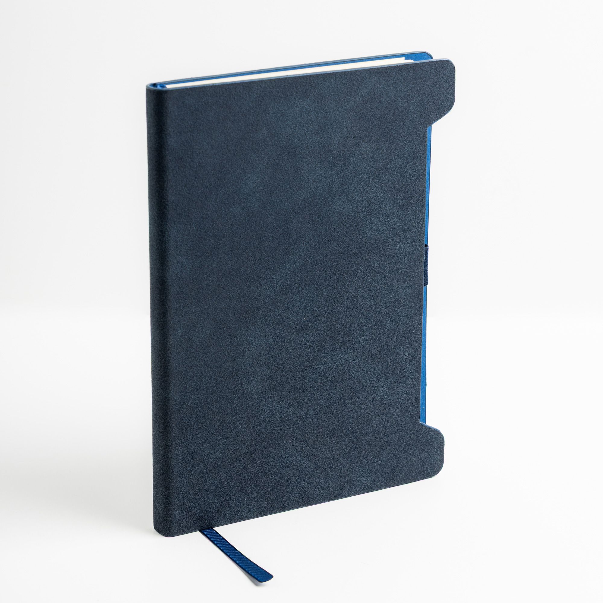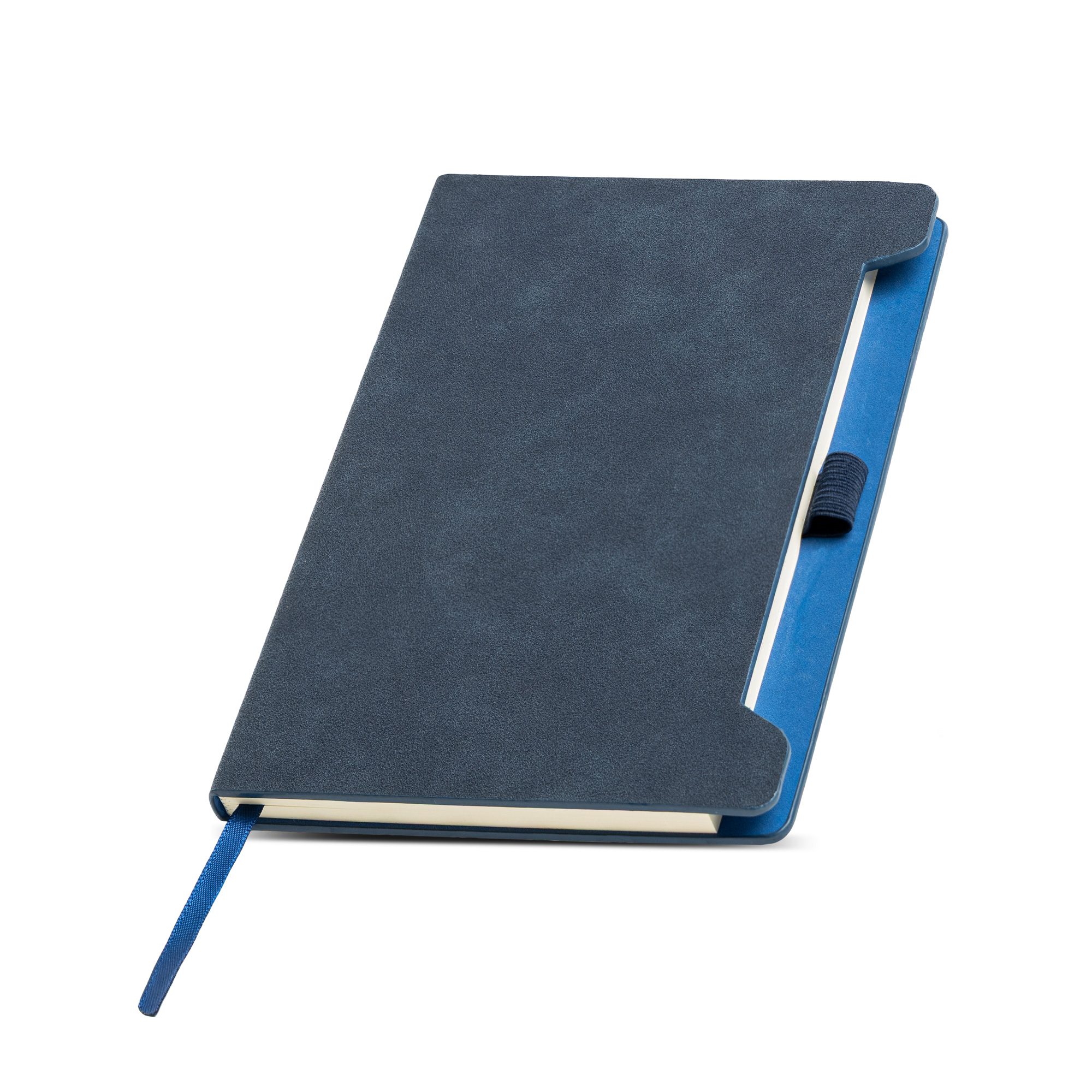Notes A5 z miękką okładką z RPU i uchwytem na długopis. Zaokrąglone rogi okładki mają gładką, elegancką fakturę, która przyjemnie leży w dłoni. Wnętrze zawiera 96 gładkich kartek w kolorze kości słoniowej, z certyfikatem FSC, co gwarantuje zrównoważoną produkcję. Boczny uchwyt zabezpiecza długopis i sprawia, że jest on zawsze pod ręką, łącząc praktyczność z elegancją.