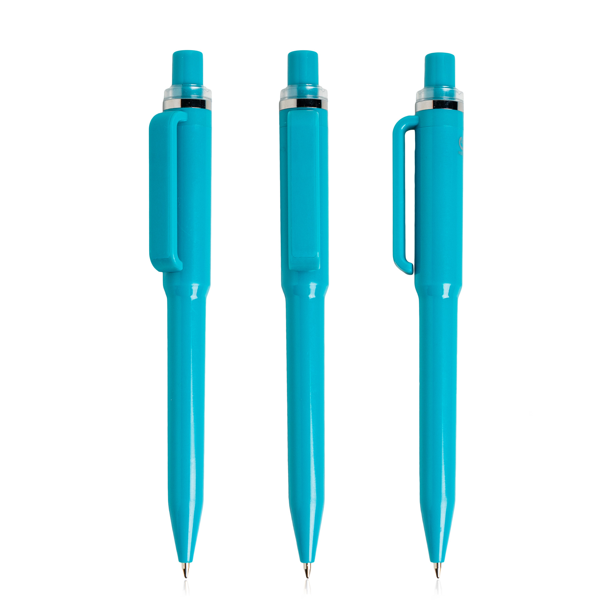 Długopis wykonany z recyklingowanego plastiku ABS, o nowoczesnym designie inspirowanym naczyniami do napojów. Wyposażony w mechanizm przyciskowy, zapewnia płynne pisanie niebieskim tuszem. Dostępny w różnych kolorach, stanowi zrównoważony i stylowy wybór na co dzień