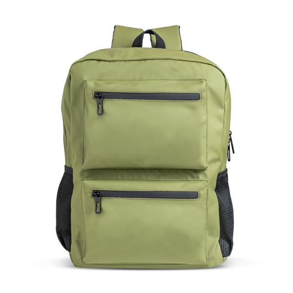 Miękki plecak komputerowy z PU z dwiema przednimi kieszeniami. Odkryj idealny plecak na co dzień lub w podróży! Wykonany z SOFT PU, łączy funkcjonalność, styl i bezpieczeństwo. Posiada jedną główną komorę (z wyściełaną przegrodą na laptopy do 15,6”), 2 wypukłe przednie kieszenie, 1 kieszeń antykradzieżową chroniącą najcenniejsze przedmioty oraz 2 boczne kieszenie z siatki, zapewniające łatwy dostęp do butelek lub drobnych akcesoriów. Wyposażony w uchwyt do mocowania na walizce. Dostępny w 2 eleganckich kolorach: oliwkowa zieleń i granat. Wybierz swój i przekonaj się, jak idealnie łączy styl z funkcjonalnością.