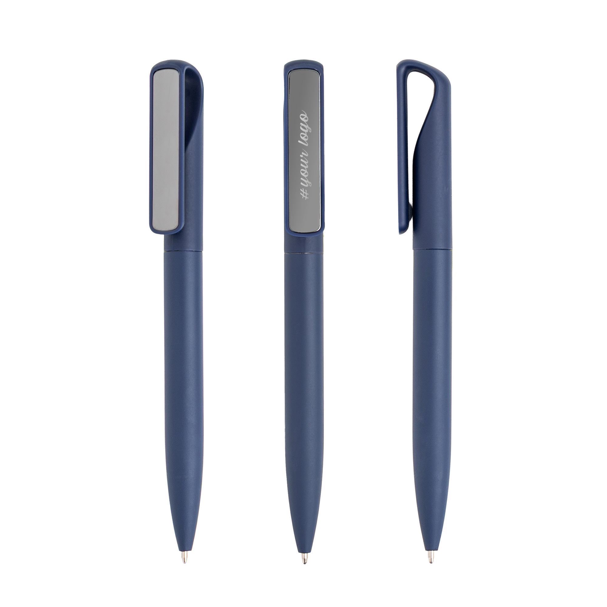 Elegancki długopis z gumowaną powierzchnią soft-touch, która zapewnia wygodny i pewny chwyt. Wyposażony w metaliczny klips o lustrzanym efekcie, dodający całości wyjątkowej elegancji. Pisze czarnym tuszem, idealnie sprawdzając się na co dzień – w pracy, szkole czy podczas wydarzeń. Łączy styl z funkcjonalnością.