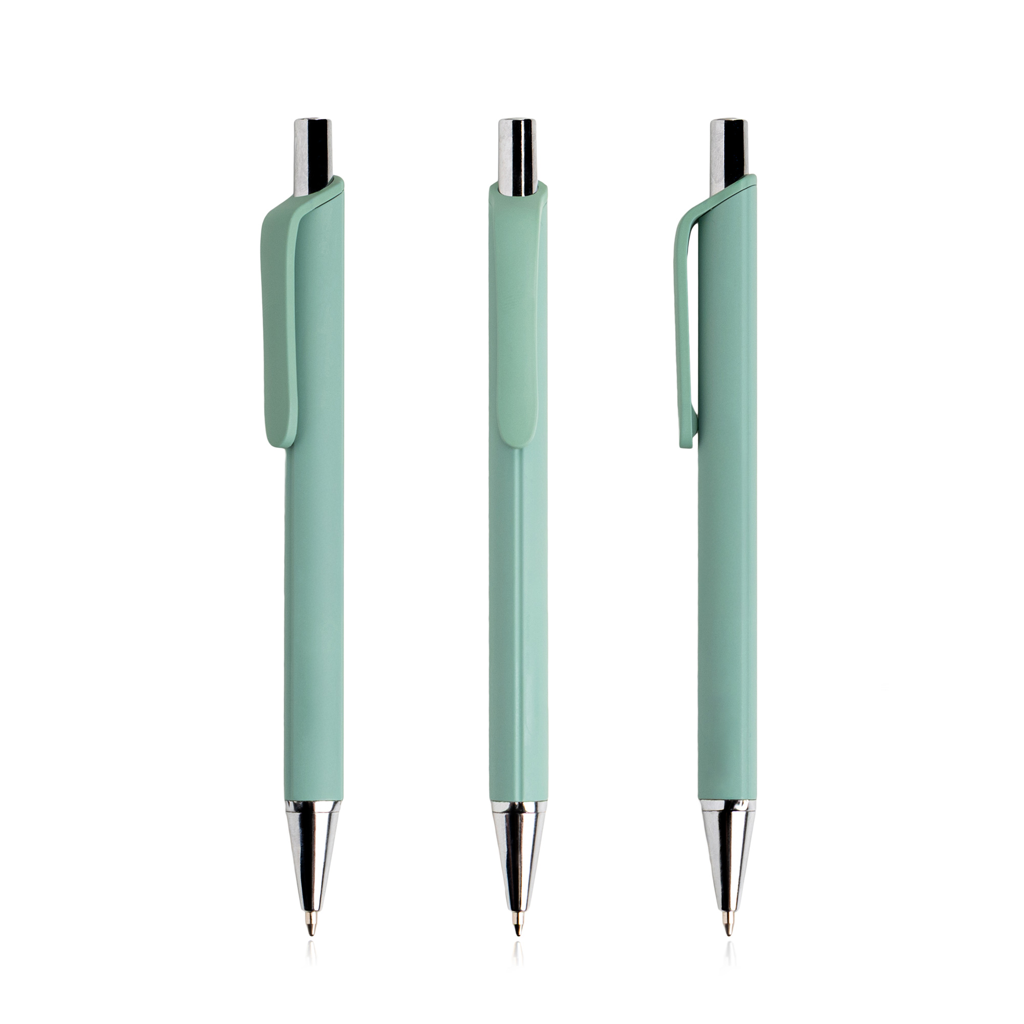 Długopis z ergonomicznym, trójkątnym kształtem, zapewniający komfort pisania przez długi czas. Gumowana powłoka gwarantuje pewny, antypoślizgowy chwyt. Dostępny w delikatnych pastelowych kolorach, łącząc styl i funkcjonalność. Idealny do codziennego użytku w biurze, szkole lub w domu. Pisze na czarno.