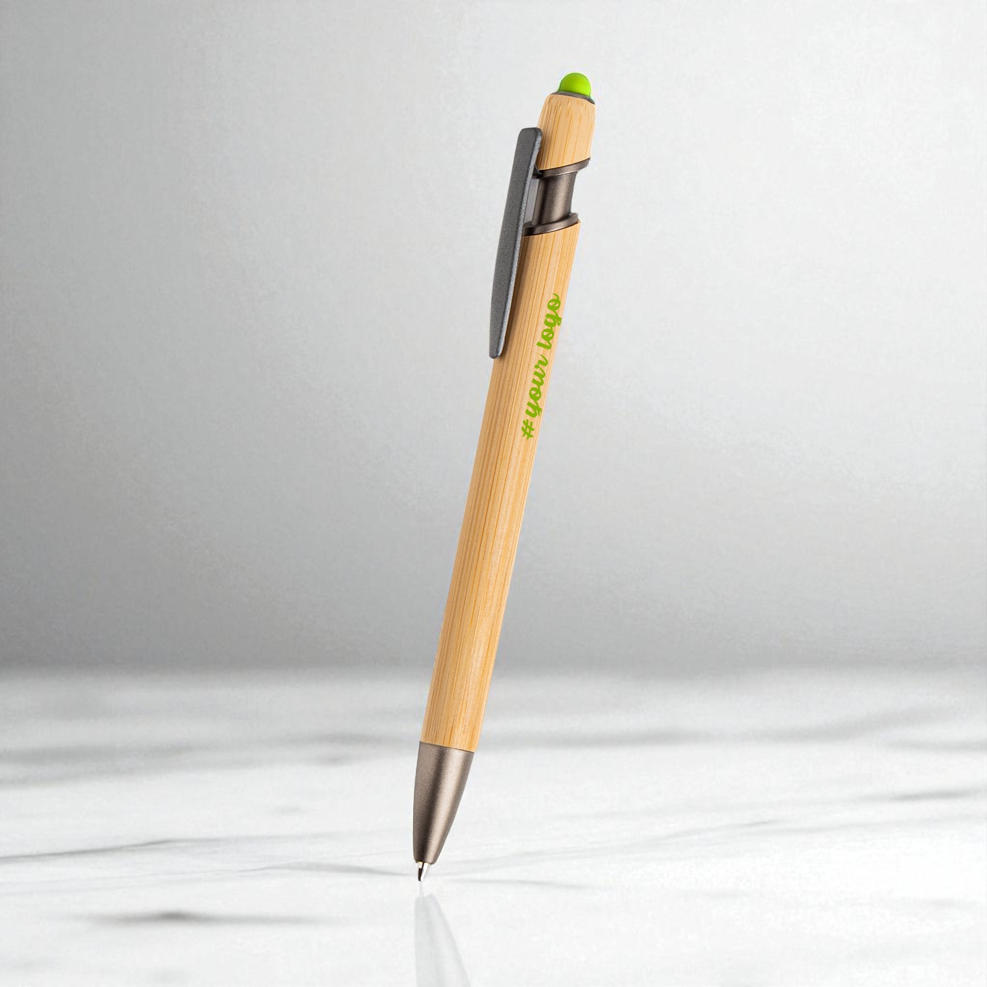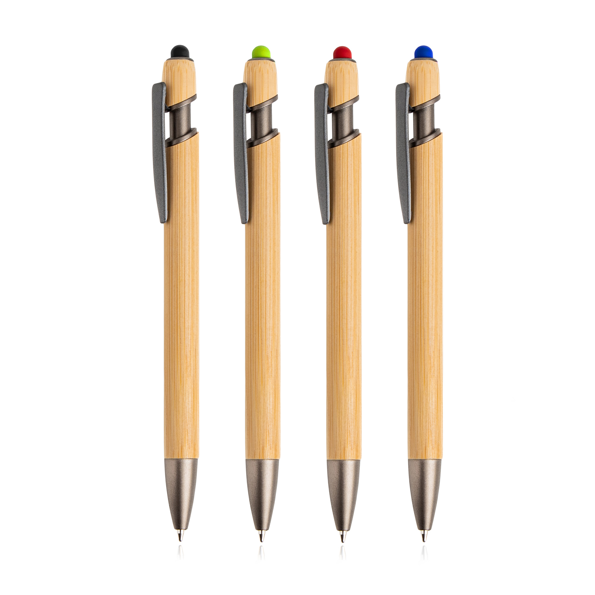 Długopis z bambusowym korpusem, pozyskiwanym z odpowiedzialnie zarządzanych lasów (certyfikat FSC), łączący nowoczesną funkcjonalność z ekologicznym wyborem. Wyposażony w eleganckie, metalowe detale w wykończeniu gun metal, solidny klips oraz mechanizm przyciskowy. Na górze znajduje się kolorowa końcówka dotykowa (dostępna w różnych kolorach), idealna do obsługi ekranów dotykowych. Ekologiczna, elegancka i wszechstronna propozycja.