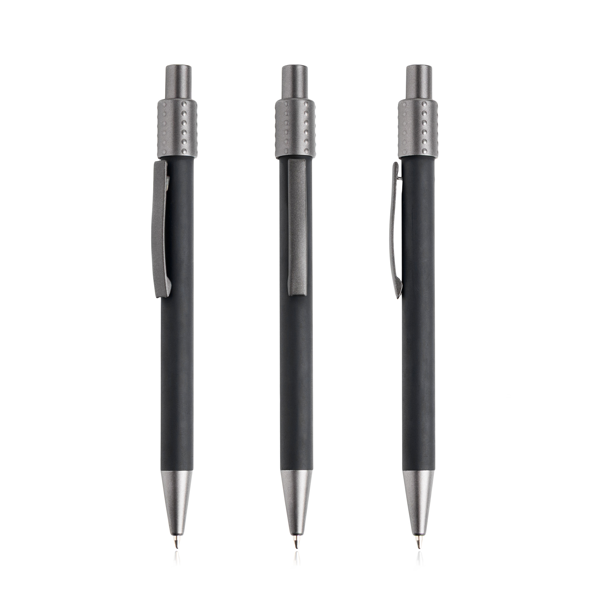 Długopis z aluminiowym korpusem i gumowanym wykończeniem, zapewniający komfortowe i stylowe pisanie. Wyposażony w końcówkę i przycisk z tworzywa ABS oraz klips ze stali nierdzewnej, łączy trwałość z nowoczesnym designem. Zintegrowany spinner na górze pełni funkcję antystresową, czyniąc go interaktywnym i zabawnym gadżetem. Czarny wkład JUMBO i waga zaledwie 15 g sprawiają, że to lekkie i praktyczne narzędzie do codziennego użytku