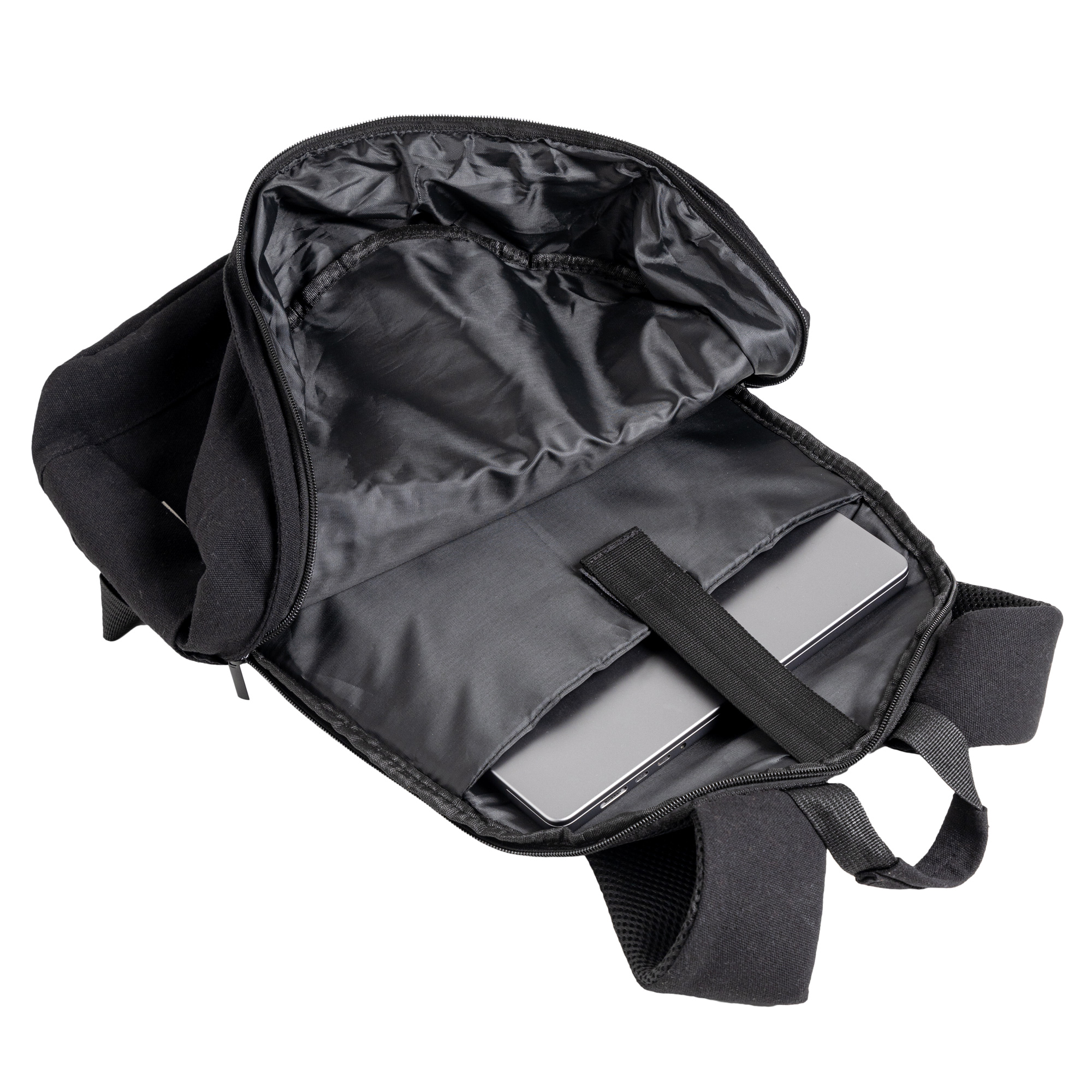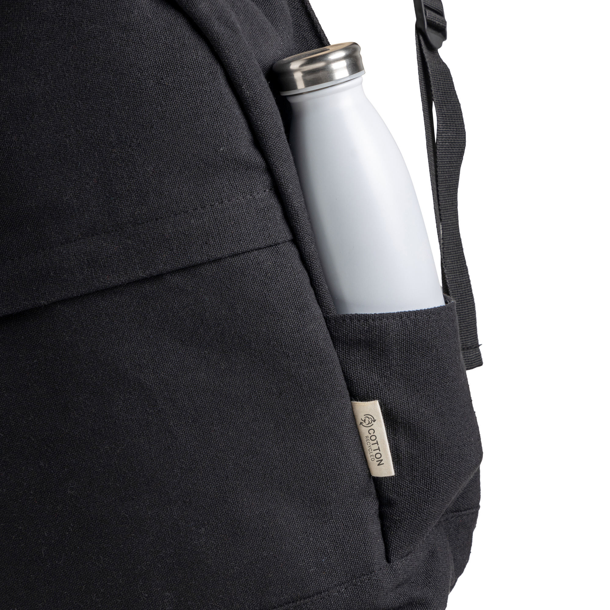 Plecak na laptopa wykonany z bawełny z recyklingu. Nasz plecak na laptopa, stworzony z bawełny pochodzącej z recyklingu, łączy elegancję, zrównoważony charakter i funkcjonalność, dzięki czemu jest idealnym wyborem dla osób ceniących praktyczne i przyjazne środowisku akcesoria. Przestronna i wyściełana komora główna zapewnia bezpieczny transport komputerów do 15,6 cala. Plecak posiada także dwie zewnętrzne kieszenie boczne, doskonałe do przenoszenia butelek z wodą, parasoli lub innych przedmiotów wymagających szybkiego dostępu, kieszeń antykradzieżową zwiększającą ochronę Twoich rzeczy oraz przednią kieszeń z klapą, która gwarantuje większą dyskrecję i lepszą organizację. Dzięki nowoczesnemu designowi połączonemu ze świadomością ekologiczną, plecak ten zapewnia wygodę, bezpieczeństwo i styl – zarówno na co dzień, jak i w podróży.