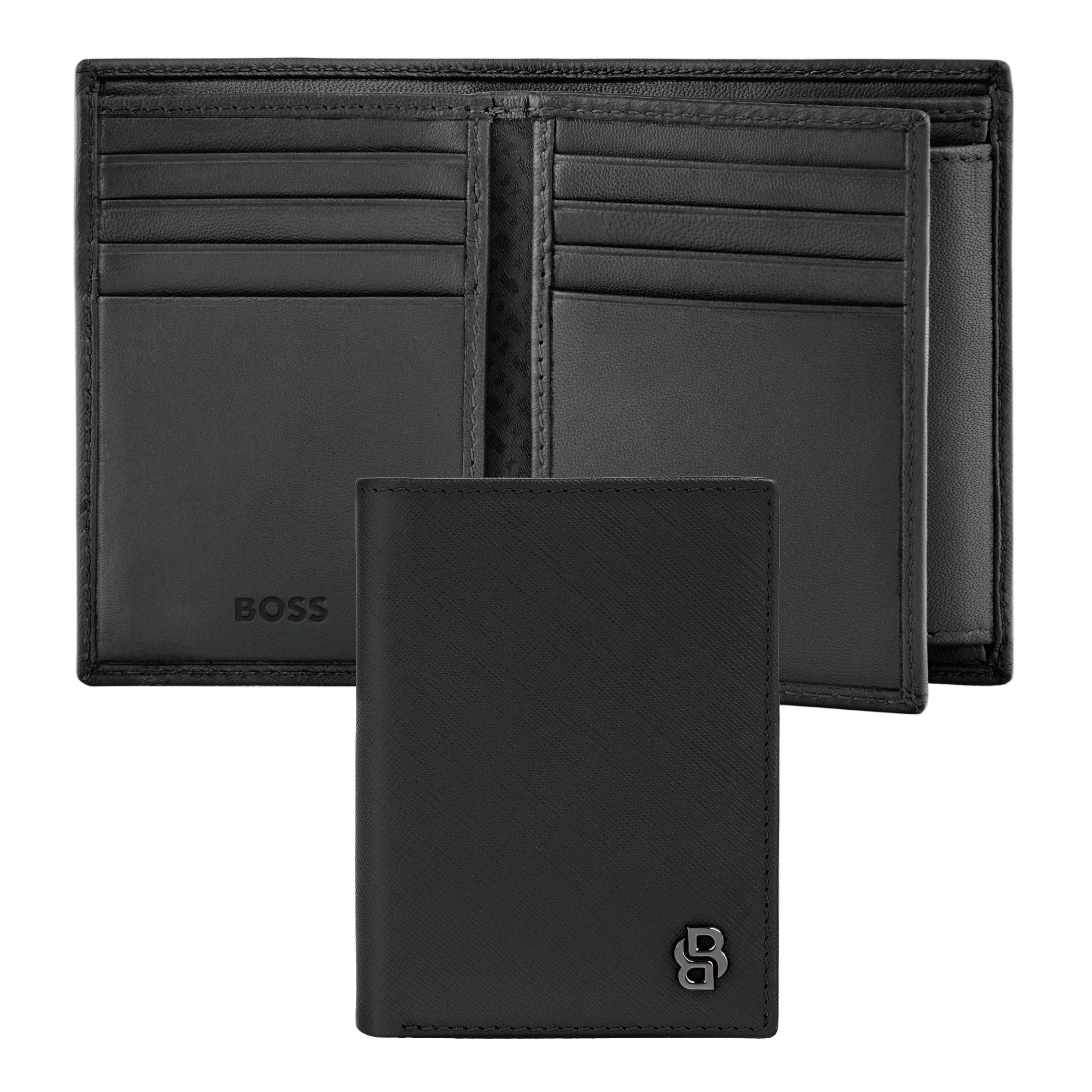 Linia Double B Saffiano wykonana jest ze starannie wyselekcjonowanych skór licowych, z nadrukiem saffiano w matowym wykończeniu, które nadaje jej wyrafinowany, luksusowy charakter. Każdy element jest starannie wykonany i pięknie wykończony nową płytą Double B w głębokim, pistoletowym kolorze, nadającym jej nowoczesny, charakterystyczny akcent. Dostępna w kolorze czarnym lub szarym. Posiada: 2 przegródki na banknoty, 12 przegródek na karty, 5 przegródek bocznych i 1 przegródkę na monety. Zgodnie z DNA marki BOSS, jest prosta, funkcjonalna, elegancka i minimalistyczna.