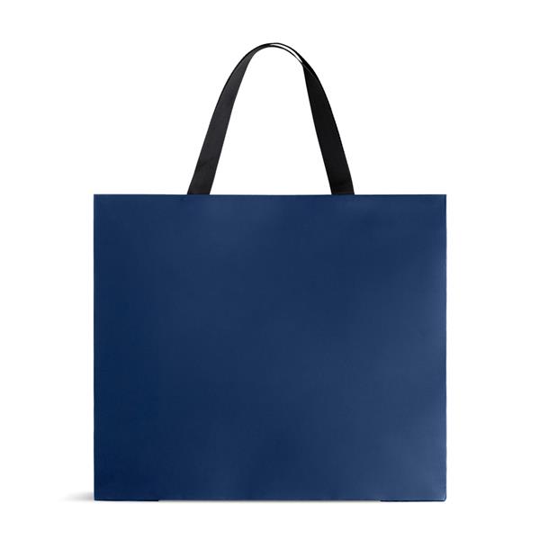 Duża torba papierowa w formacie poziomym o wymiarach 40 × 34 × 15 cm, z czarnym, materiałowym uchwytem. Wykonana z papieru premium o gramaturze 250 g z matowym wykończeniem, pochodzącego z odpowiedzialnie zarządzanych lasów. Torba z automatycznym dnem i wysoką jakością wykończenia, idealna do sklepów, na eventy oraz na wyjątkowe upominki. Podkreśl dbałość swojej marki o detale przy każdej realizacji — wybierz papierową torbę premium, która robi doskonałe pierwsze wrażenie. Dostępna w kolorach: białym, czarnym, czerwonym, granatowym oraz naturalnym.