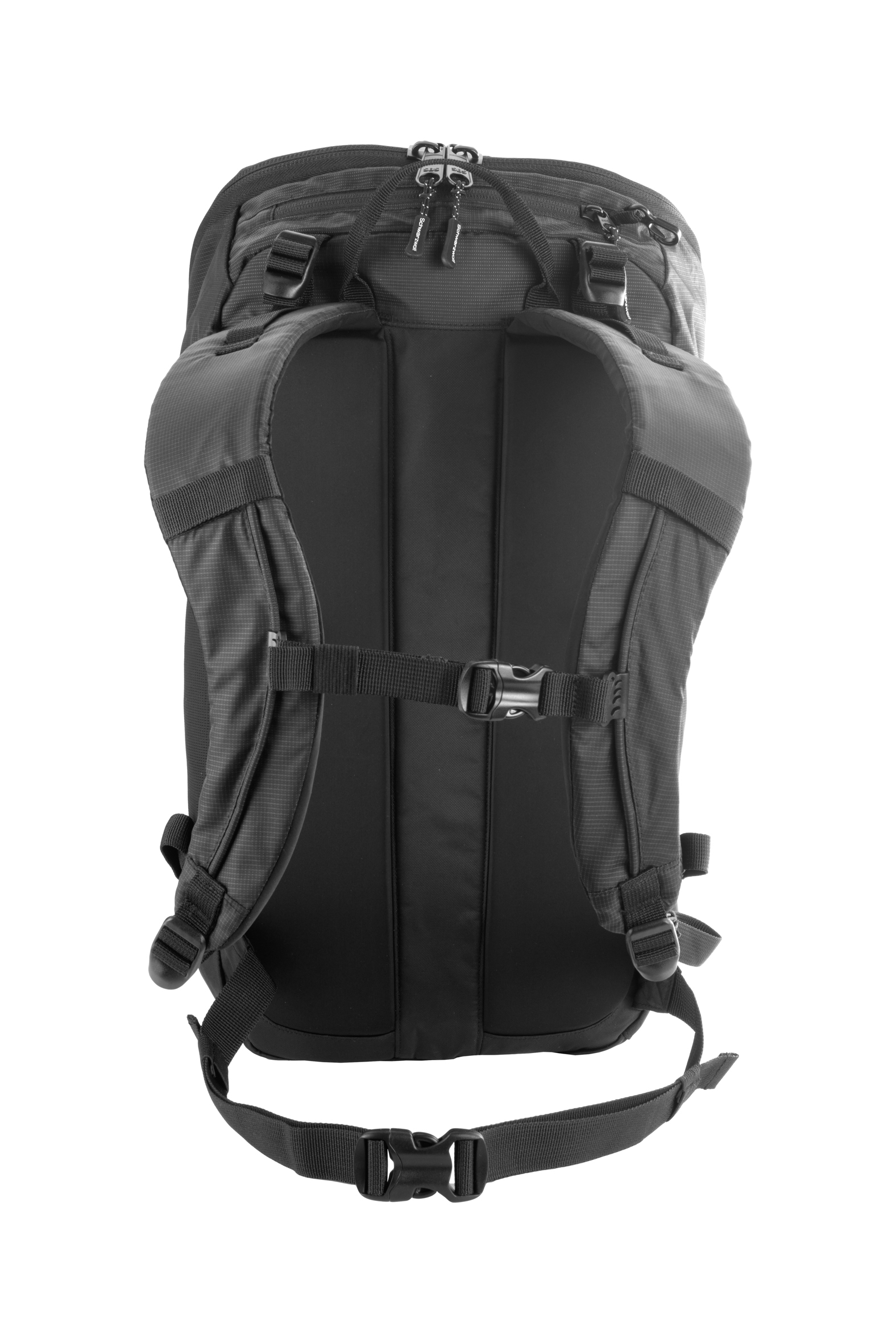 Praktyczny plecak, idealny zarówno na piesze wędrówki, jak i do użytku miejskiego. Plecak posiada komorę główną zapinaną na zamek błyskawiczny i kieszeń wewnętrzną, dwie boczne kieszenie z siatki, małą kieszeń zapinaną na zamek błyskawiczny w górnej części pleców oraz pas biodrowy. Po obu stronach plecaka znajdują się dwa paski z klamrami. Plecak posiada wyściełany system pleców oraz szelki.