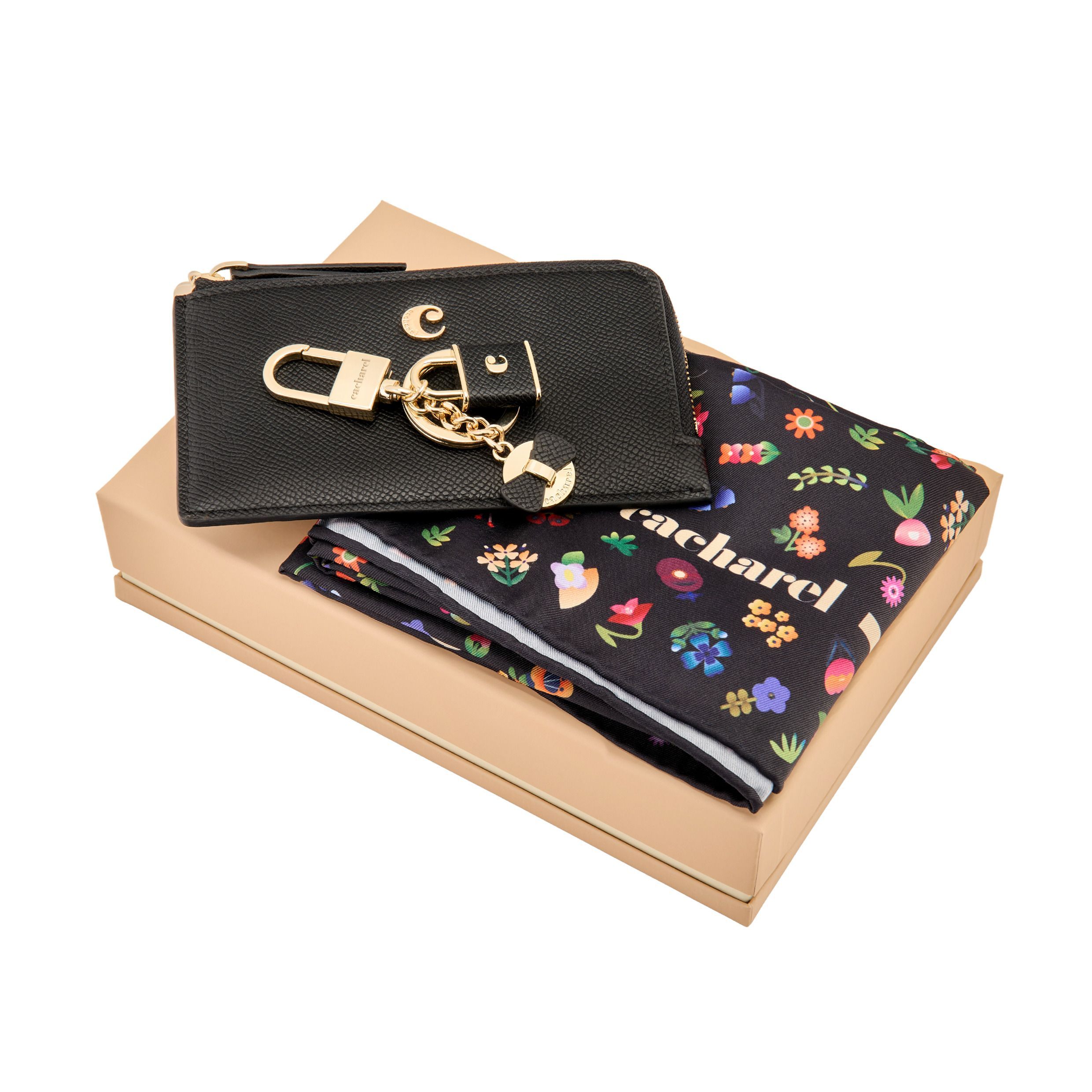 Zestaw Séraphine Czarny (brelok, etui na karty i szal)