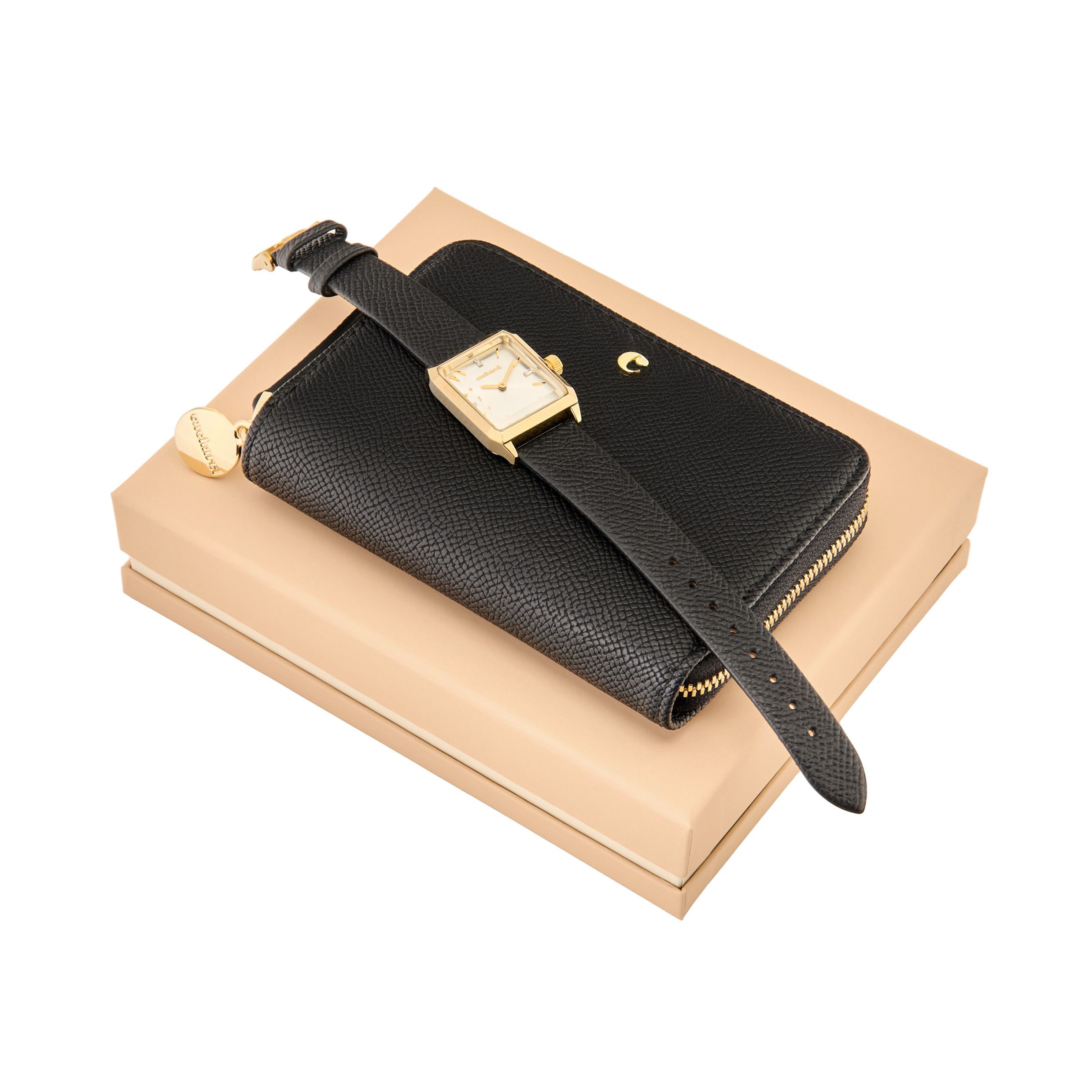 Zestaw Séraphine Czarny (portfel zapinany na zamek i zegarek)