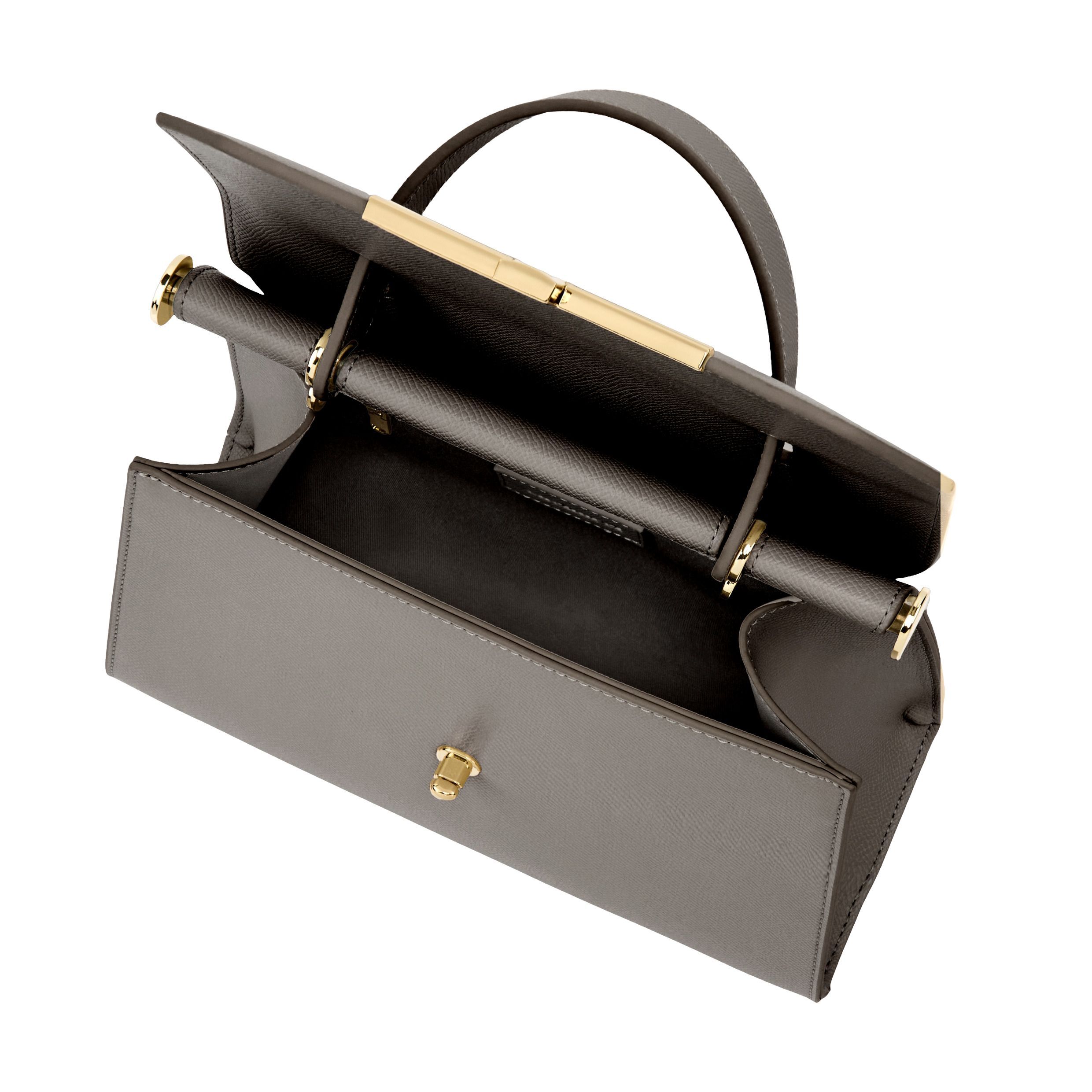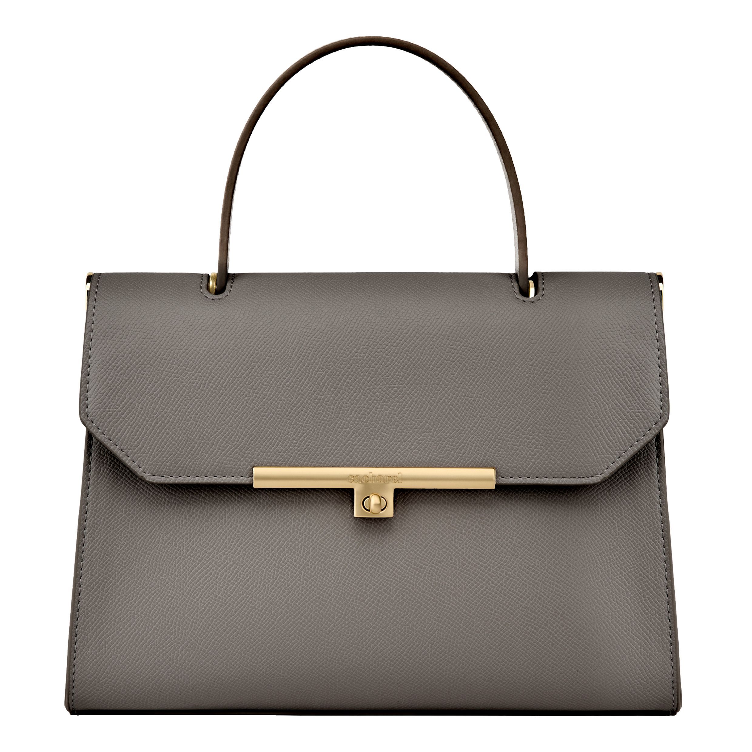 Duża torba Seraphine emanuje ponadczasową elegancją dzięki swojej strukturalnej i luksusowej sylwetce. Wykonana z wegańskiej skóry o fakturze saffiano, sygnowana jest ekskluzywnym złotym zapięciem obrotowym z wygrawerowanym logo Cacharel, które ucieleśnia wyrafinowany minimalizm. Elegancki uchwyt u góry podkreśla jej elegancki charakter, a złote wykończenia dodają kobiecego i eleganckiego akcentu. Dyskretne złote logo TPU z tyłu dopełnia charakterystyczne detale. Zaprojektowane z myślą o połączeniu stylu i funkcjonalności, przestronne wnętrze zawiera przegrodę zapinaną na zamek, która ułatwia organizację codziennych rzeczy. Dostępna w kolorze taupe, jasnoszarym i czarnym.