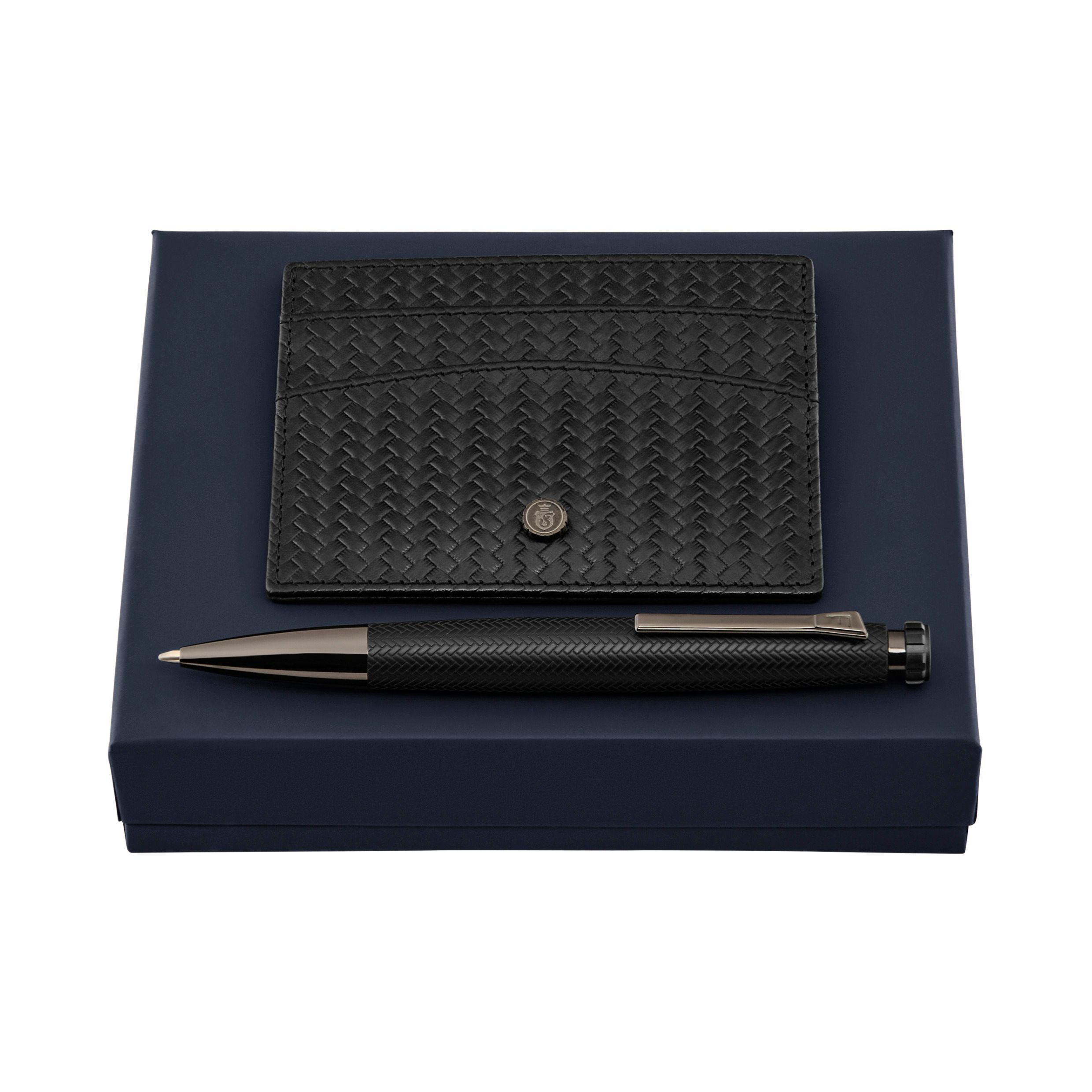 Zestaw Interlace Czarny (długopis i etui na karty)