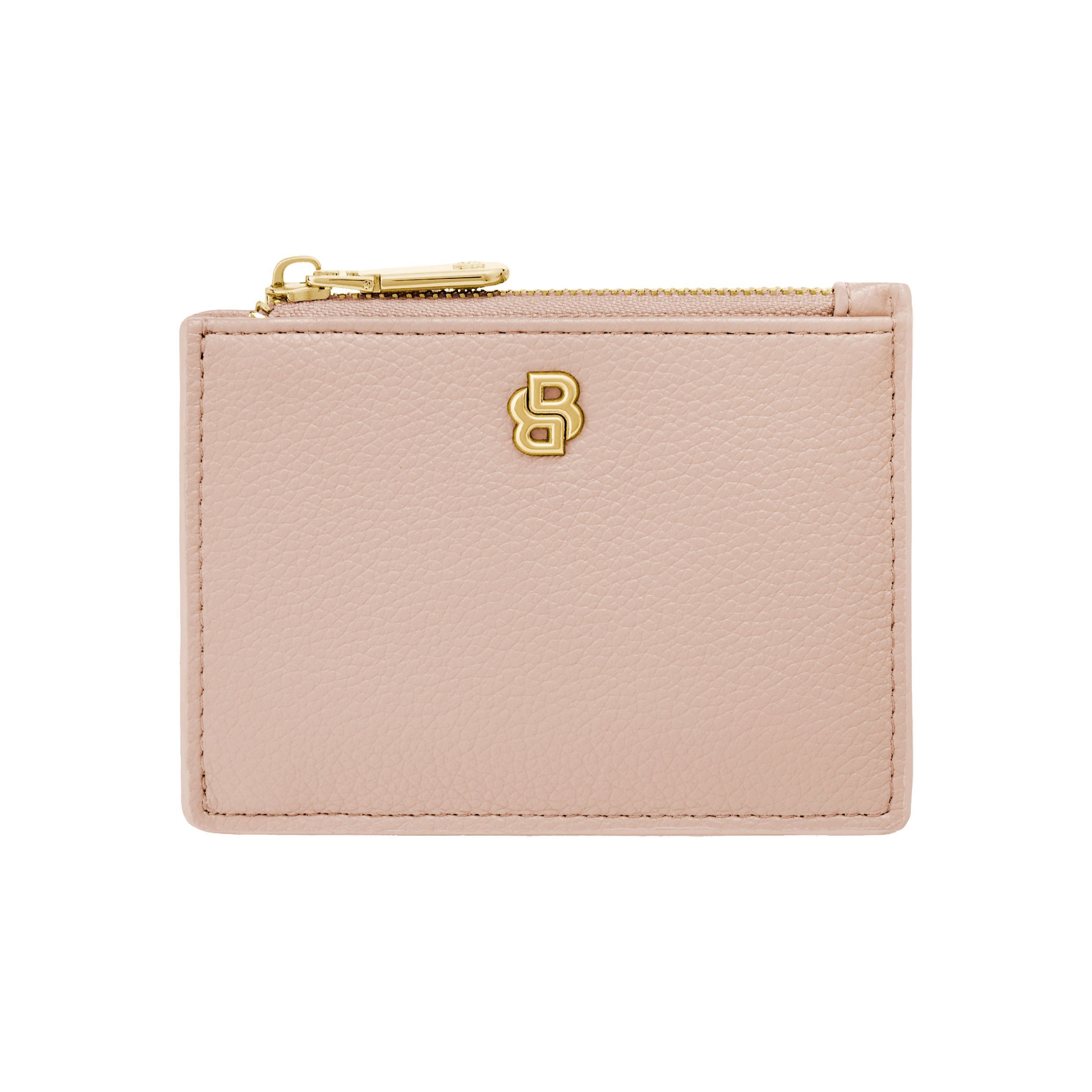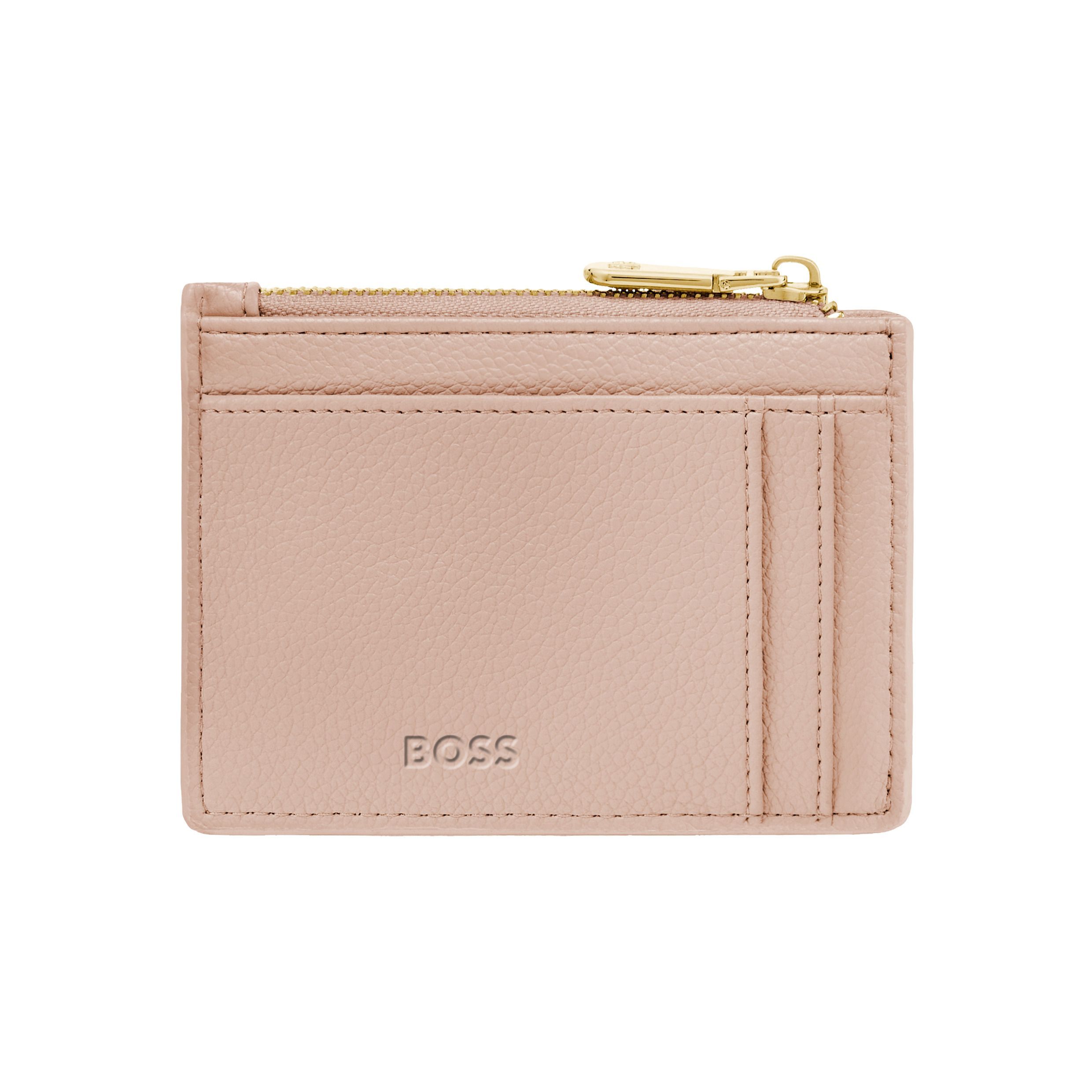 Ten wyrafinowany dodatek został zaprojektowany jako hybryda etui na karty i breloka, dzięki czemu może bezproblemowo pełnić obie funkcje. Wykonany z matowego poliuretanu o ziarnistej fakturze, wyróżnia się sygnaturą Double B z przodu i równoważy wytłoczone logo BOSS z tyłu. Nowo opracowane, pozłacane zamki błyskawiczne z detalem Double B nadają mu miękkie, delikatne wykończenie, zachowując jednocześnie czysty, minimalistyczny wygląd. Z tyłu znajdują się trzy przegródki na karty oraz pojemna, klinowa komora główna, zapinana na zamek błyskawiczny, w której znajduje się zintegrowany brelok BOSS przymocowany do łańcuszka przypominającego biżuterię. Wykończony w całości jasnymi złotymi wykończeniami, model dostępny jest w delikatnej i żywej palecie kolorów: czerni, bordowym, szarobrązowym, cielistym i liliowym.