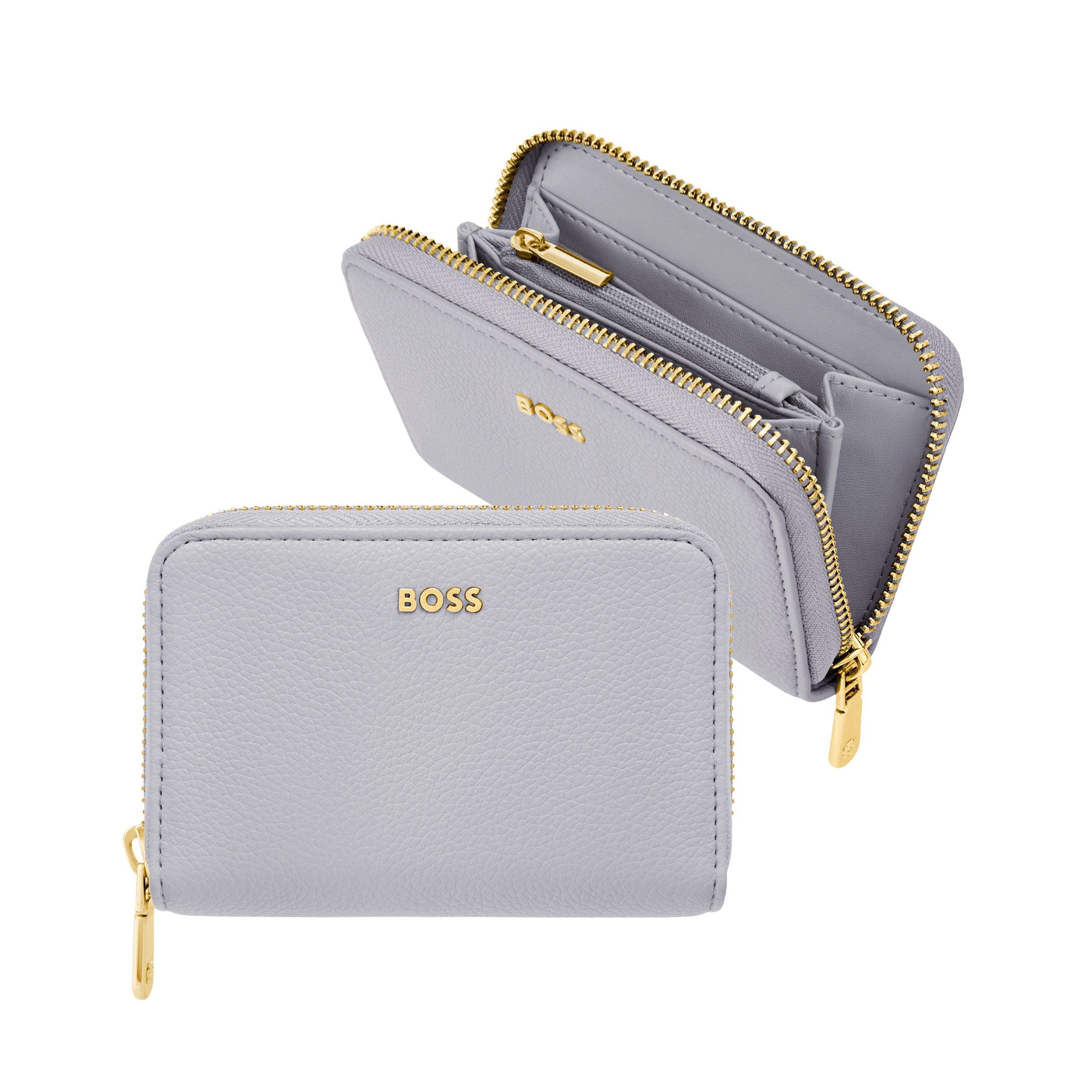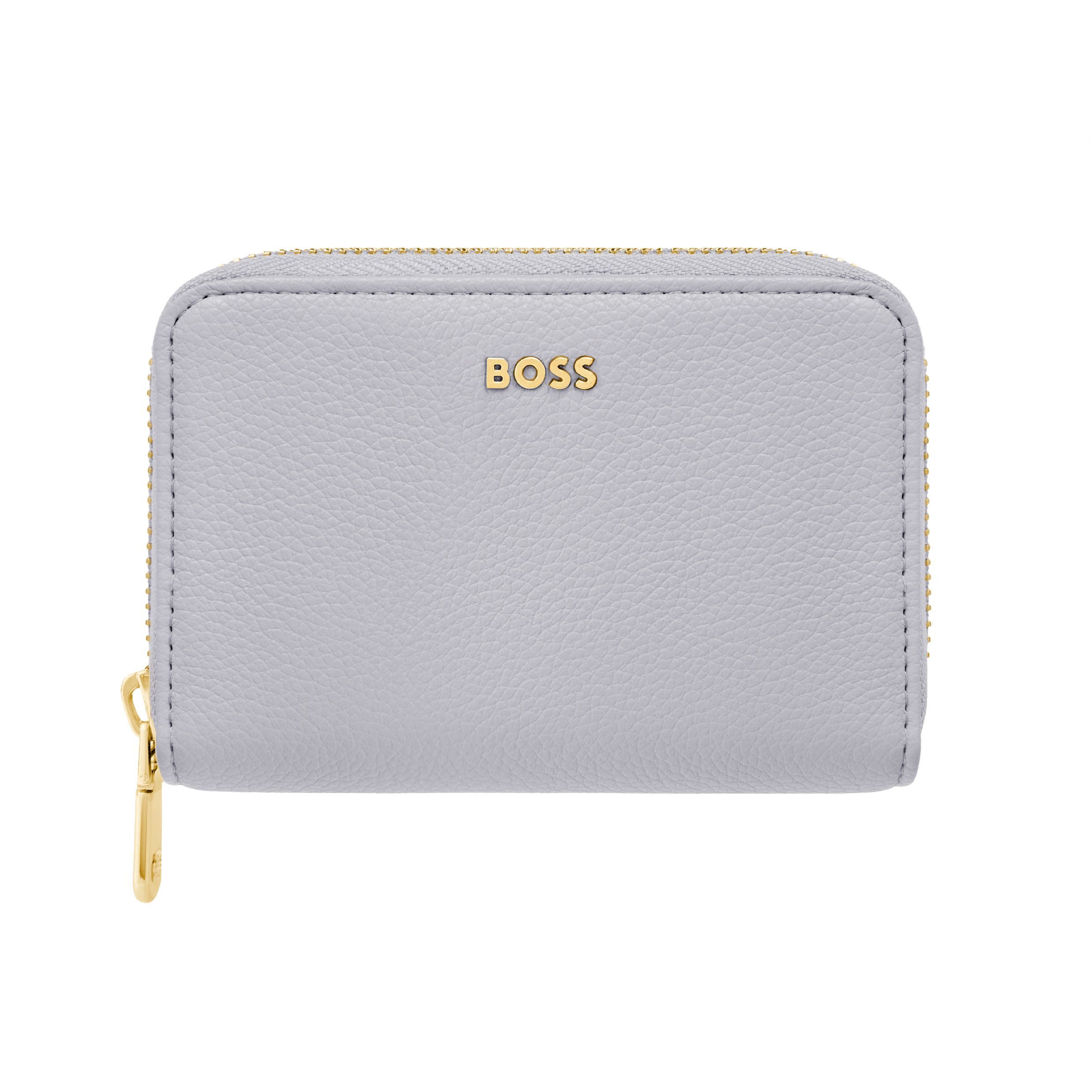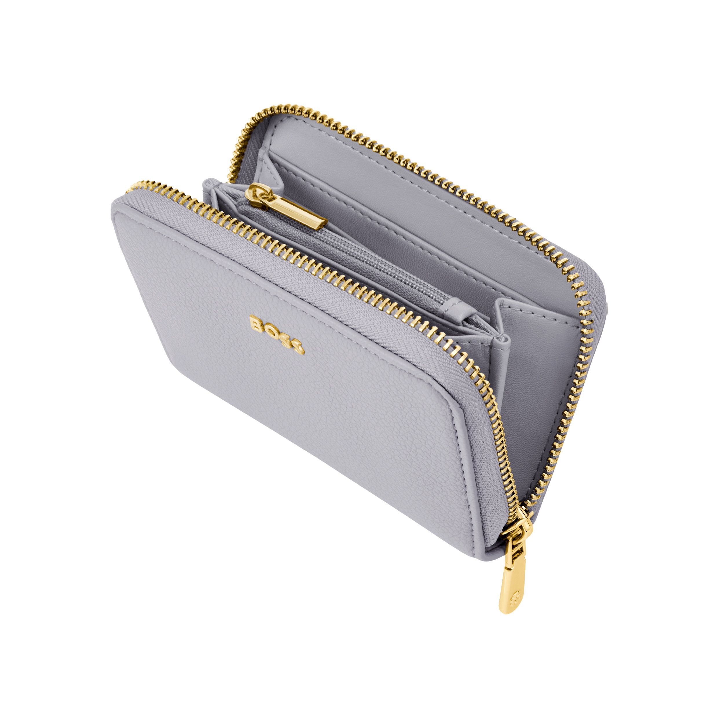 Ten klasyczny, kompaktowy portfel zapinany na zamek błyskawiczny został wykonany ze starannie dobranego, matowego poliuretanu o ziarnistej fakturze, miękkiego i przyjemnego w dotyku. Jego design podkreśla sygnowana blaszka z logo BOSS z przodu oraz nowo opracowane, jasnozłote zamki błyskawiczne z detalem Double B. Zaprojektowany z myślą o kompaktowym i funkcjonalnym charakterze, portfel posiada cztery przegródki na karty, po dwie z każdej strony, oraz centralną przegrodę zapinaną na zamek błyskawiczny, zapewniającą bezpieczne przechowywanie. Wykończony w całości jasnozłotymi wykończeniami, które nadają mu eleganckiego i luksusowego charakteru, portfel jest dostępny w stonowanej palecie kolorów, w tym czerni, bordowym, szarobrązowym, cielistym i liliowym.