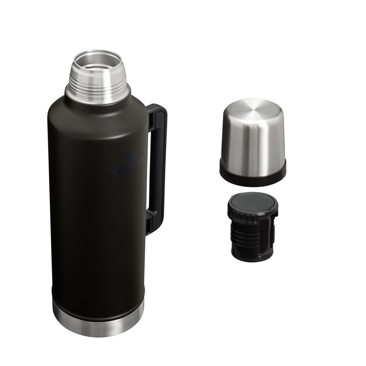 Marka Stanley oferuje niezwykle wytrzymałe termosy wykonane z najwyższej jakości stali nierdzewnej 18/8 odpornej na korozję. Jeśli myślisz o termosie na lata, to właśnie taki jest Stanley Legendary Classic. Firma od 1913 znana jest z produkcji termosów, niektóre z nich w bardzo dobrej formie przetrwały do dzisiaj. Stanley obecnie obejmuje swoje produkty 25-letnią gwarancją.Termos do ciepłych i zimnych napojów to idealny wybór na górskie wędrówki, biwaki oraz letnie wyjazdy pod namiot. Sprawdzi się również doskonale w jesienne dni, gdy chcesz cieszyć się gorącą herbatą lub kawą podczas pracy w ogrodzie czy w domu.Termos o pojemności 2,3L posiada podwójne ścianki,z izolacją próżniową, które doskonale izolują temperaturę napoju: gorący napój do 35 godzin, zimny napój do 40 godzin, napoje z dodatkiem kostek lodu do 5 dni.Termos z serii Classic wyposażony jest w przelewowy korek i wygodną pokrywkę, która może służyć jako kubek do picia. Produkt został wyposażony w solidną, składana rączkę, która ułatwia trzymanie dużego termosu. Dodatkowo, wewnętrzna część rączki jest pokryta gumą, co zapobiega ślizganiu się i zapewnia pewny oraz komfortowy chwyt.Produkt można myć w zmywarce. Pamiętaj, że duże naczynia, które można myć w zmywarce, po takim myciu mogą wymagać dodatkowego mycia ręcznego. Za każdym razem rozważ czy mycie ręczne nie będzie lepszą opcją.Przed rozpoczęciem korzystania z produktu zapoznaj się z treścią papierowej broszury załączonej przez producenta. Broszura zawiera instrukcję prawidłowego użytkowania oraz pielęgnacji produktu.