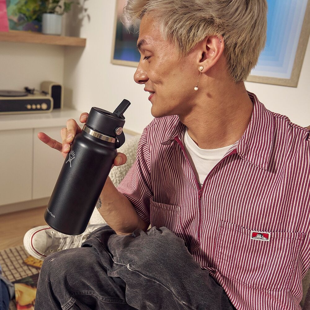 Hydro Flask 946 ml Wide Mouth Bottle z zakrętką Flex Straw Cap to izolowana butelka ze stali nierdzewnej z uszczelnioną słomką, zaprojektowana do szybkiego i wygodnego picia w ruchu. Podwójna izolacja próżniowa pomaga utrzymać napoje zimne nawet do 24 godzin. Szeroki otwór ułatwia dodawanie kostek lodu oraz wygodne napełnianie i czyszczenie, a możliwość mycia w zmywarce upraszcza codzienne użytkowanie. Zakrętka Flex Straw Cap nie jest przeznaczona do gorących płynów.• trwałe materiały wysokiej jakości• kompatybilność z produktami Hydro Flask• wygodne użytkowanie• łatwe czyszczenie