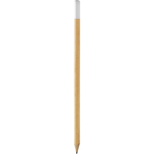 Uroczy ołówek w kolorze naturalnego drewna z kolorową końcówką, zatemperowany.