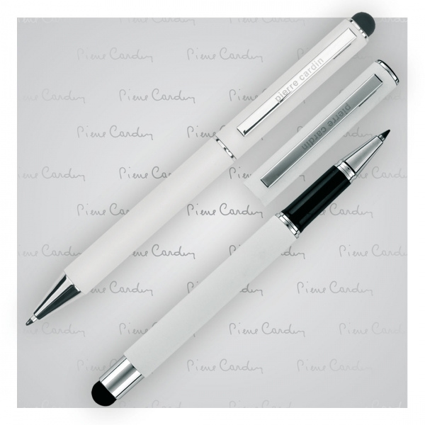 Luksusowy zestaw piśmienny składający się z długopisu i pióra kulkowego wykonanych z aluminium, z przyjemną w dotyku powierzchnią soft touch i srebrnymi detalami. Długopis wyposażony w niebieski wkład 0,7 mm, natomiast pióro w niemiecki wkład Schneider w kolorze niebieskim 0,5 mm. Obydwa elementy posiadają funkcję touch pen. Całość zapakowana w eleganckie etui prezentowe z certyfikatem autentycznośći Pierre Cardin.