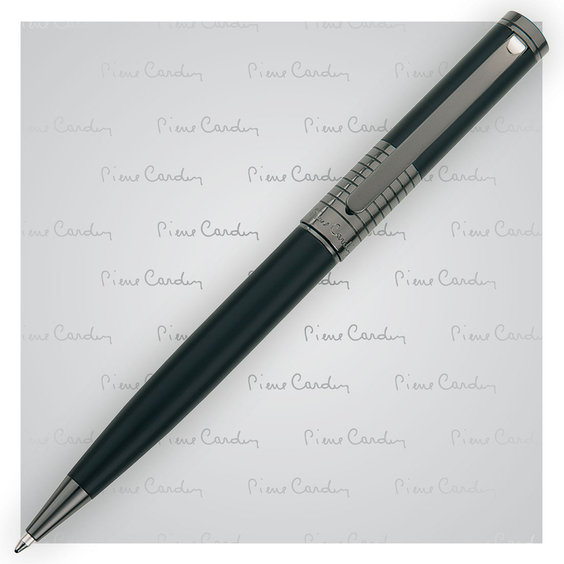 Elegancki długopis metalowy z gładkim korpusem oraz ciemnymi detalami. Wyposażony w wysokiej jakości niebieski wkład z końcówką 1 mm. W zestawie z wkładem zapasowym piszącym na czarno. Zapakowany w eleganckie pudełko prezentowe z certyfikatem autentyczności Pierre Cardin.