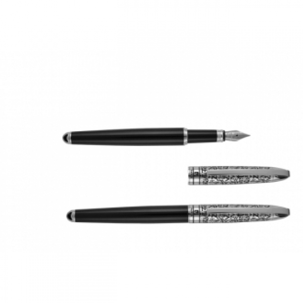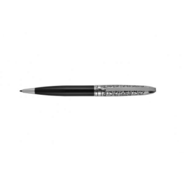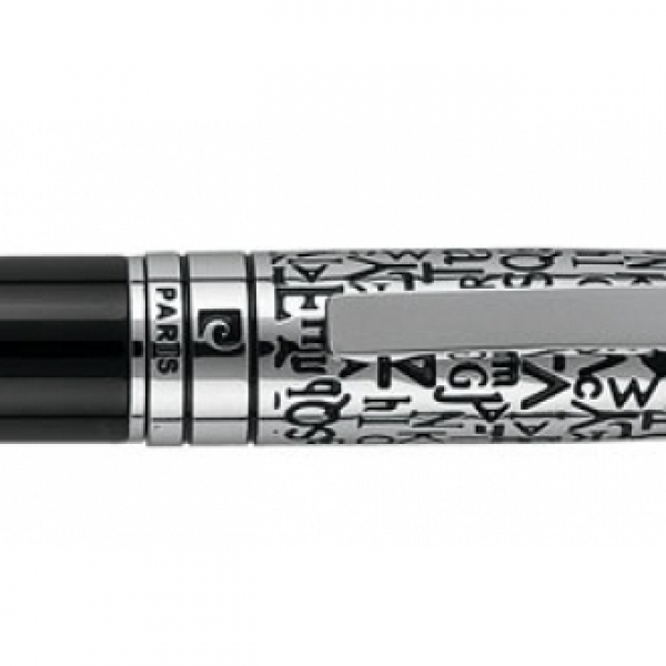 Zestaw piśmienny składający się z długopisu i pióra wiecznego o unikatowym wzornictwie z grawerowanymi literami alfabetu. Obydwa artykuły posiadają wkłady w standardowych rozmiarach, piszące na niebiesko. Długopis posiada zapasowy, czarny wkład. Całość zapakowana w eleganckie pudełko prezentowe z certyfikatem autentyczności Pierre Cardin.