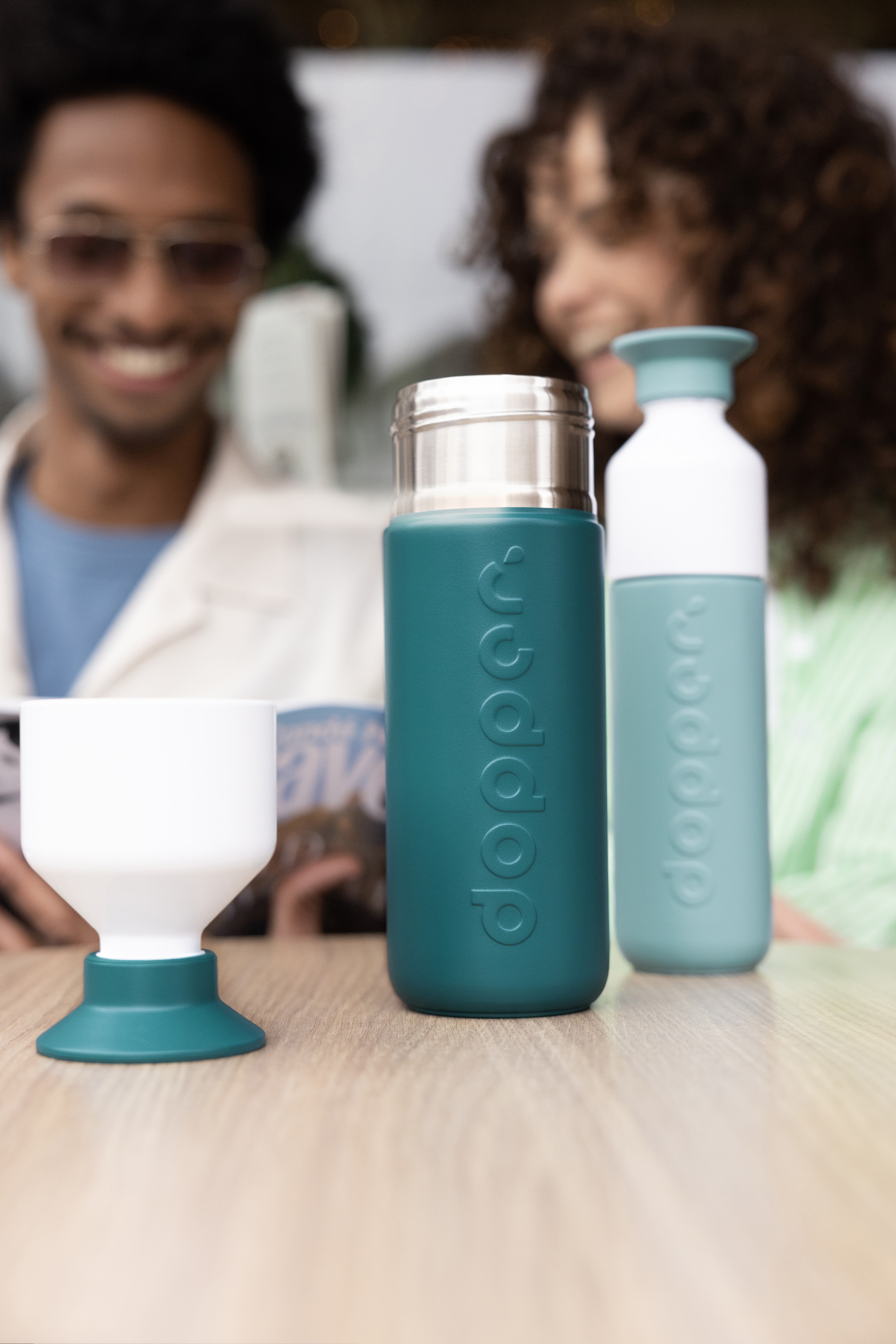 Dbasz o środowisko? Lubisz ładny i praktyczny design? Jeśli tak, to termiczna butelka wielokrotnego użytku marki Dopper będzie idealnym wyborem. Unikatowy wzór autorstwa Rinke van Remrtela, najwyższej jakości materiały użyte do produkcji (bez BPA i ftalanów) oraz praktyczny kubek ukryty w zatyczce sprawiają, że jest to czego potrzebujesz! Butelka składa się tylko z trzech części - dzięki czemu można bardzo szybko umyć ją ręcznie lub po prostu wrzucić do zmywarki. Warto również dodać, że butelki Dopper stały się bardzo ważną częścią kultury holenderskiej. Zawdzięczają to nie tylko wyjątkowemu wzornictwu i jakości wykonania, ale przede wszystkim misji społecznej. Dzięki używaniu butelek wielokrotnego użytku możemy zmniejszyć ilość odpadów plastikowych. Dodatkowo 5% zysków firmy trafia bezpośrednio do fundacji, która wspiera między innymi projekty związane z dostarczaniem wody pitnej w Nepalu i oczyszczaniu oceanów. Dane techniczne: Pojemność: 350 ml Trzy części, bardzo łatwe do czyszczenia Można myć w zmywarce do 65 ° C / 149 ° F Do ciepłej i zimnej wody Utrzymuje ciepło do 9 godzin / zimno do 24 godzin Nie nadaje się do napojów mlecznych Wymiary i waga: Średnica 6 cm Wysokość 23,6 cm Waga 270 g Materiały: Stal nierdzewna 18/8 (butelka i zakrętka) PP - polipropylen (kubek) Tritan (biały/czarny kubek) Silikon (uszczelka w czapeczce i kubku) Bez BPA i ftalanów