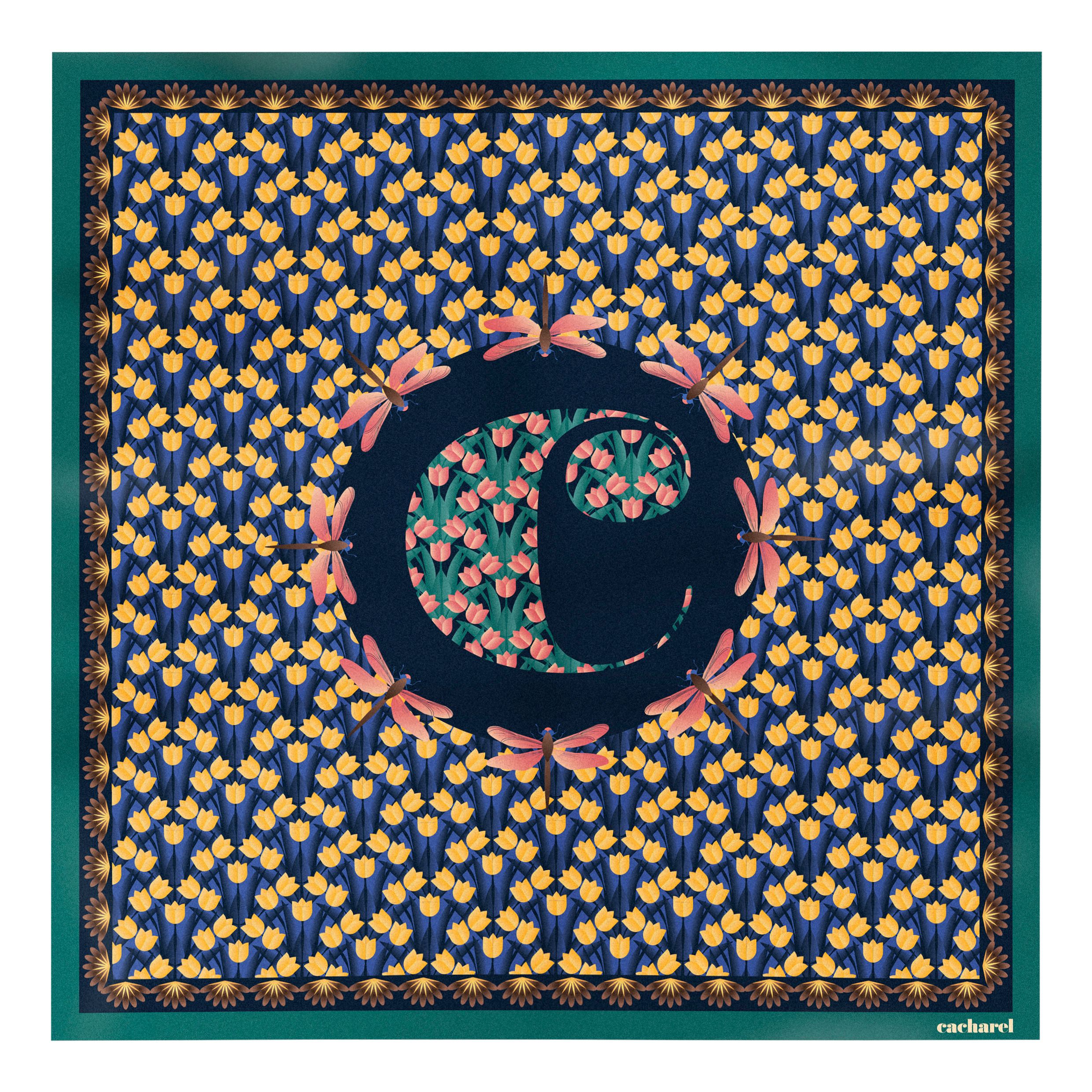 Apaszka Albane wykonana z wysokiej jakości poliestru w delikatny, jednak chrakterystyczny, kwiatowy wzór z pięknie wyeksponowanym logo Cacharel w centralnej części.