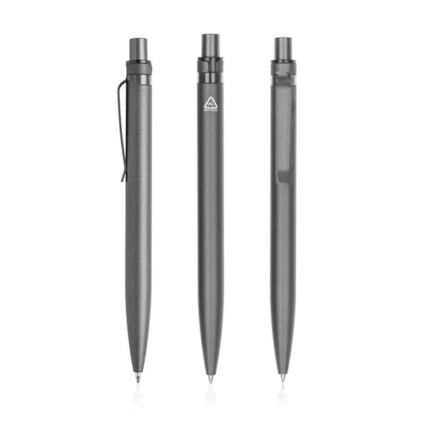 Aluminiowy długopis z kolorowym detalem. Wykonnay jest z materiałów poddanych recyklingowi, więc wybierając ten produkt wspierasz ograniczanie emisji CO2.