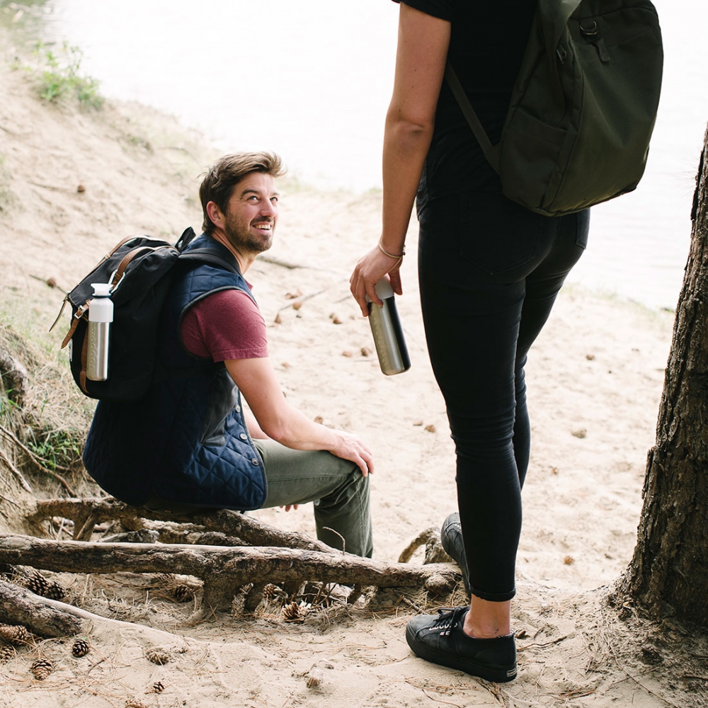 Dbasz o środowisko? Lubisz ładny i praktyczny design? Jeśli tak, to stalowa butelka wielokrotnego użytku marki Dopper będzie idealnym wyborem. Unikatowy wzór autorstwa Rinke van Remrtela, najwyższej jakości materiały użyte do produkcji (bez BPA i ftalanów) oraz praktyczny kubek ukryty w zatyczce sprawiają, że jest to czego potrzebujesz! Butelka składa się tylko z trzech części - dzięki czemu można bardzo szybko umyć ją ręcznie lub po prostu wrzucić do zmywarki. Warto również dodać, że butelki Dopper stały się bardzo ważną częścią kultury holenderskiej. Zawdzięczają to nie tylko wyjątkowemu wzornictwu i jakości wykonania, ale przede wszystkim misji społecznej. Dzięki używaniu butelek wielokrotnego użytku możemy zmniejszyć ilość odpadów plastikowych. Dodatkowo 5% zysków firmy trafia bezpośrednio do fundacji, która wspiera między innymi projekty związane z dostarczaniem wody pitnej w Nepalu i oczyszczaniu oceanów. Dane techniczne: Pojemność: 490 ml Trzy części, bardzo łatwe do czyszczenia Można myć w zmywarce do 65 ° C / 149 ° F Do ciepłej i zimnej wody Ta butelka to nie termos! Materiały: Stal nierdzewna 18/8 (zakrętka i butelka) Tritan (kubek) TPE - elastomer termoplastyczny (uszczelka w czapce i kubku) Nie zawiera BPA / plastyfikator jest nietoksyczny