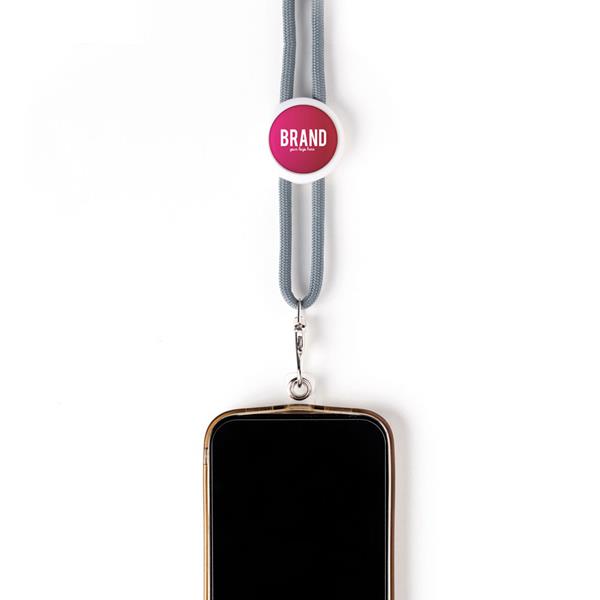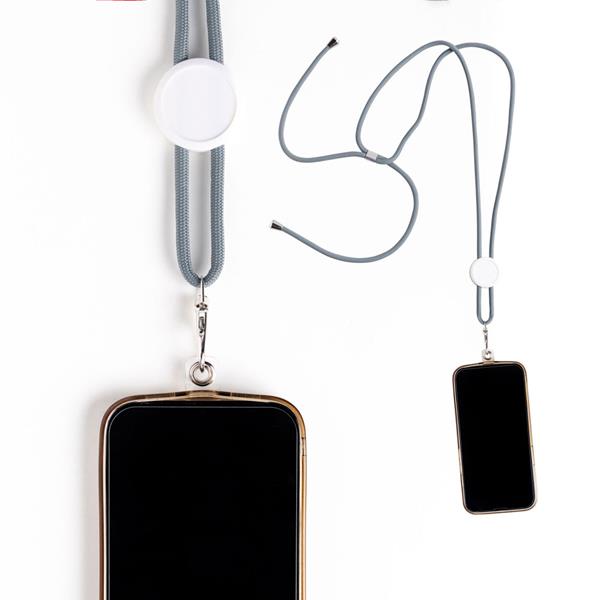 Smycz z uchwytem na telefon komórkowy z RPET. Ta super nowoczesna smycz pozwala mieć telefon zawsze pod ręką, umożliwiając szybkie odebranie połączenia i chroniąc go przed przypadkowym upuszczeniem. Możliwość personalizacji żywicą sprawia, że z pewnością będzie doskonałą opcją do promocji Twojej marki.