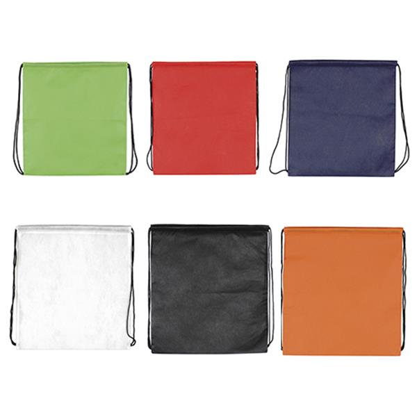 Plecak z materiału typu TNT o gramaturze 80g. Plecak z czarnymi sznurkami do przenoszenia na plecach. Idealny na wydarzenia sportowe, wycieczki szkolne, kolonie, itp.