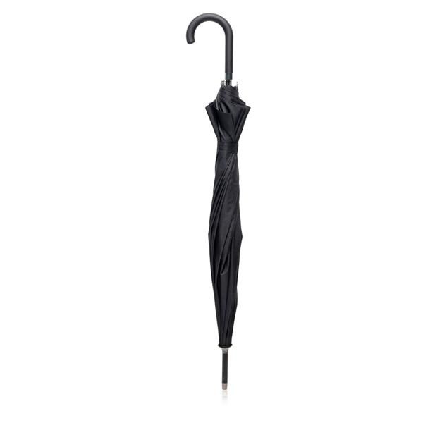 Automatyczna parasolka z materiału Pongee, z gumową rączką.Odporny model z 12 żebrowanymi elementami i włóknami.Ta parasolka ma rączkę w kształcie litery J oraz automatyczne otwieranie.