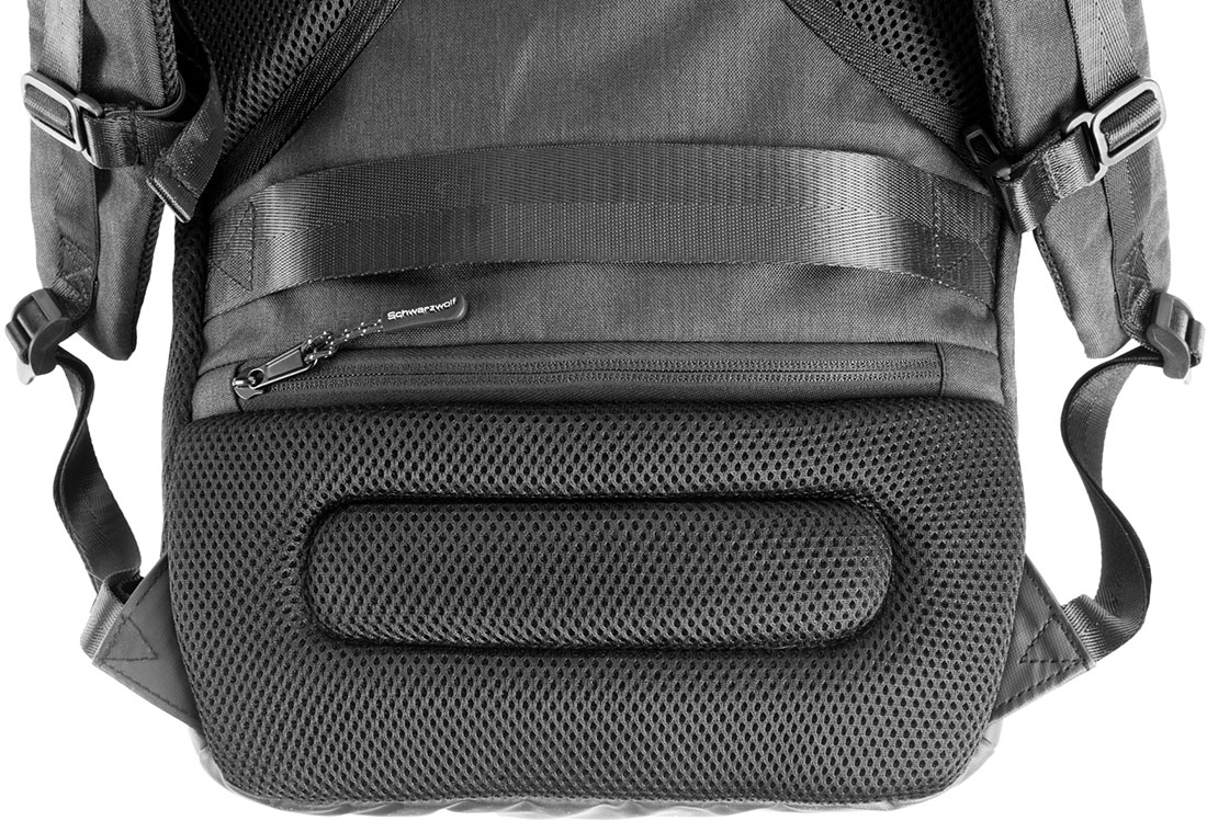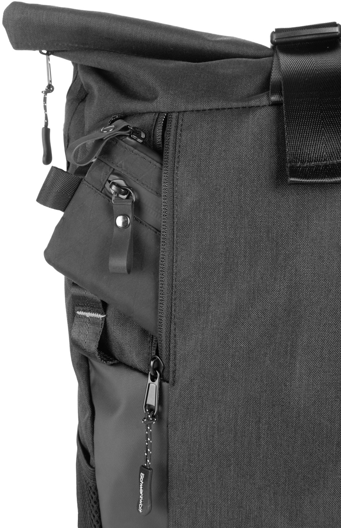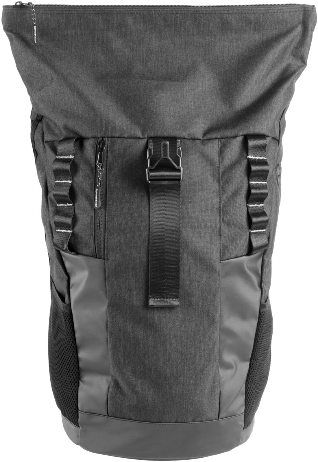Plecak ze zwijanym zamknięciem, z watowanymi szelkami i plecami, wyposażony w dużą komorę główną z jedną oddzielną kieszenią i mniejszą kieszonką na akcesoria. Z przodu plecaka znajduje się mała kieszonka zamykana na zamek, po bokach dwie siatkowe kieszenie i jedna mała kieszonka z tyłu. Po zrolowaniu górnej części plecaka całość zamykamy dwoma paskami z plastikowymi klamerkami - tak zamknięty plecak będzie miał pojemność 25l. Plecak można również zamknąć bez rolowania, na zamek błyskawiczny - wtedy pomieści 32l.