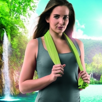 Ręcznik sportowy wykonany z szybkoschnącego materiału: poliester 55%, poliamid 45%. Pakowany w etui z siateczki.