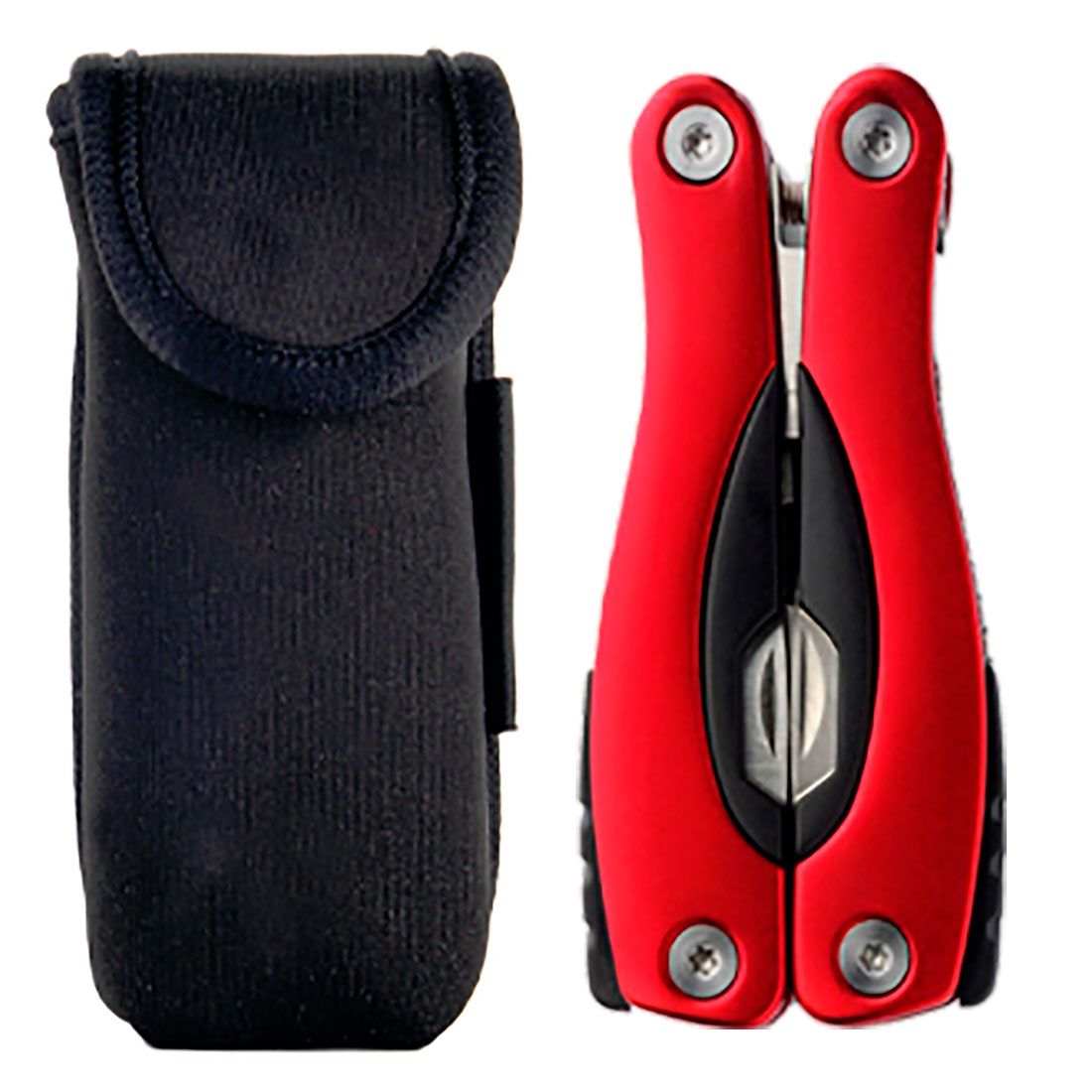 Multitool posiada 13 narzędzi, m.in.: kombinerki, pilnik, śrubokręt płaski i Philips, nóż, piłka, otwieracz do butelek i konserw. Narzędzie zapakowane w neoprenowy pokrowiec.