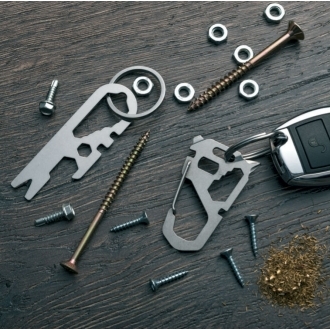 Wielofunkcyjny brelok marki Schwarzwolf zawierający 10 różnych narzędzi, w tym wkrętak Phillips, śrubokręt, klucz w 4 rozmiarach oraz magnes.