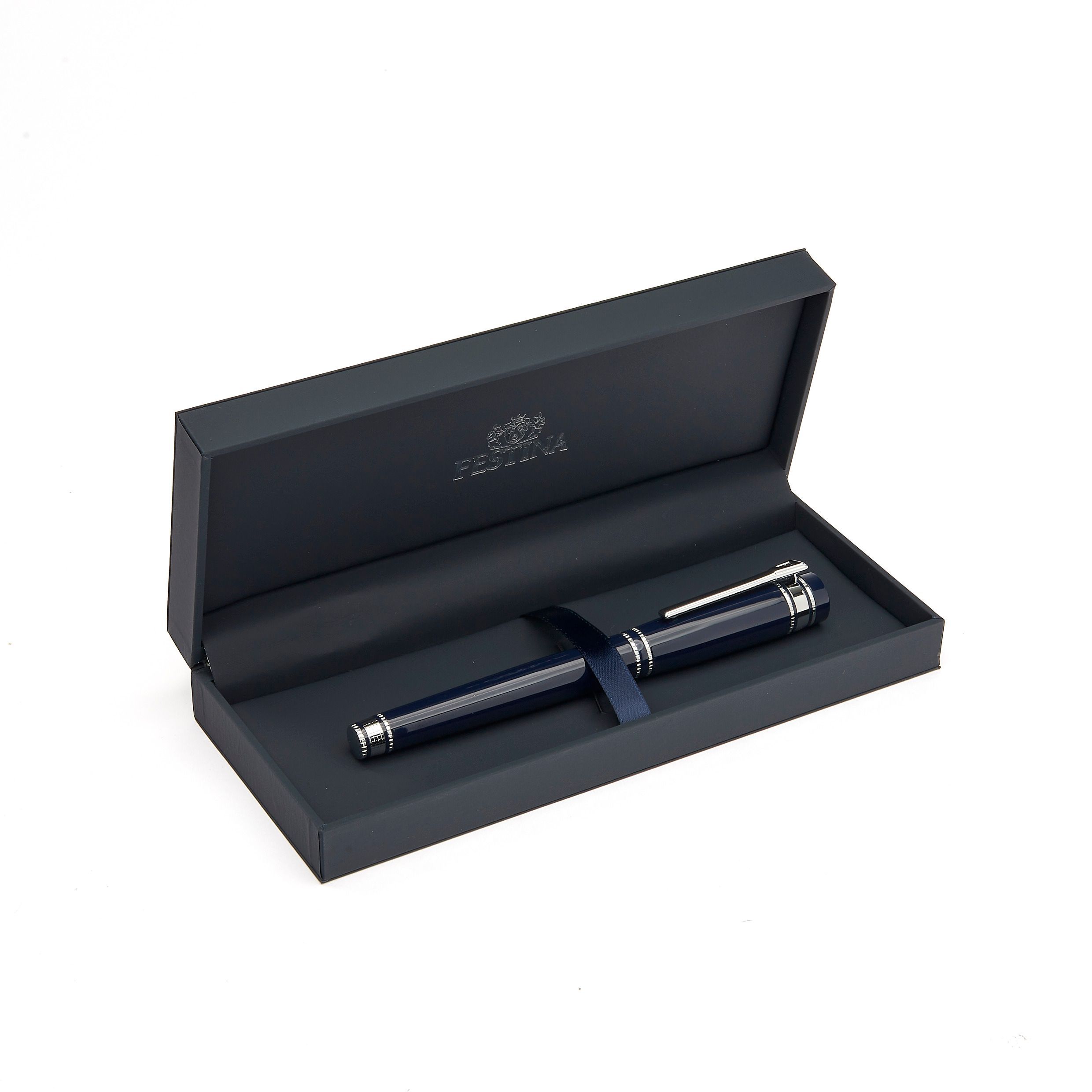 Nasza nowa sylwetka "Bold" jest imponująca, luksusowa i wyrazista. Jego nieco ponadgabarytowa rama jest oferowana w luksusowych, błyszczących lakierach wzmocnionych wyraźnymi chromowanymi akcentami, ze szczegółowymi grawerunkami. Ten wyróżniający się element piśmienniczy jest wykończony naszym kultowym, delikatnie wykonanym klipsem odsłaniającym symbol F. Bold Classic jest oferowany w palecie eleganckich kolorów: Ciemnozielony, Granatowy i Czarny. Górna część naszego długopisu Bold jest wygrawerowana z Festina Blazon, elementem projektu, który jest obecny w całej naszej istniejącej kolekcji piśmienniczej.