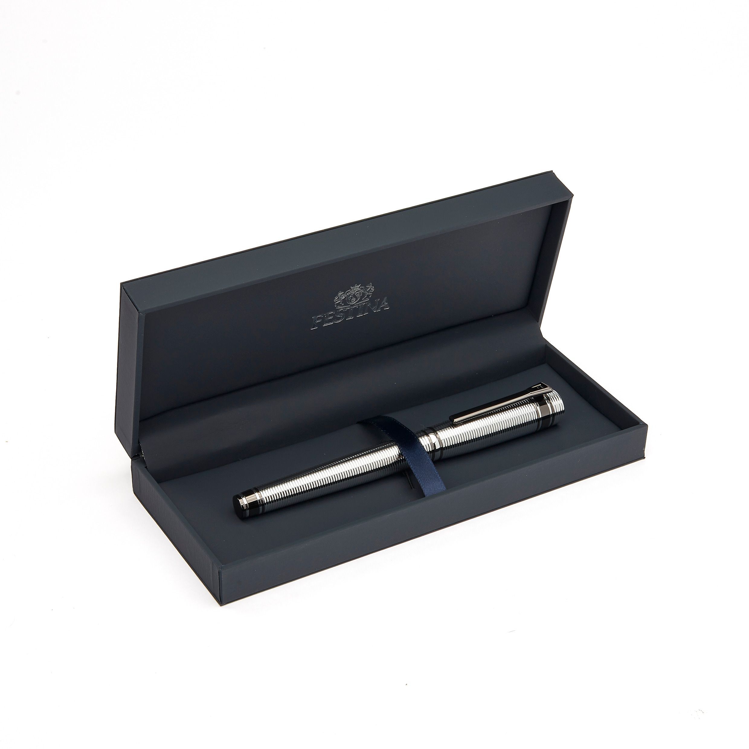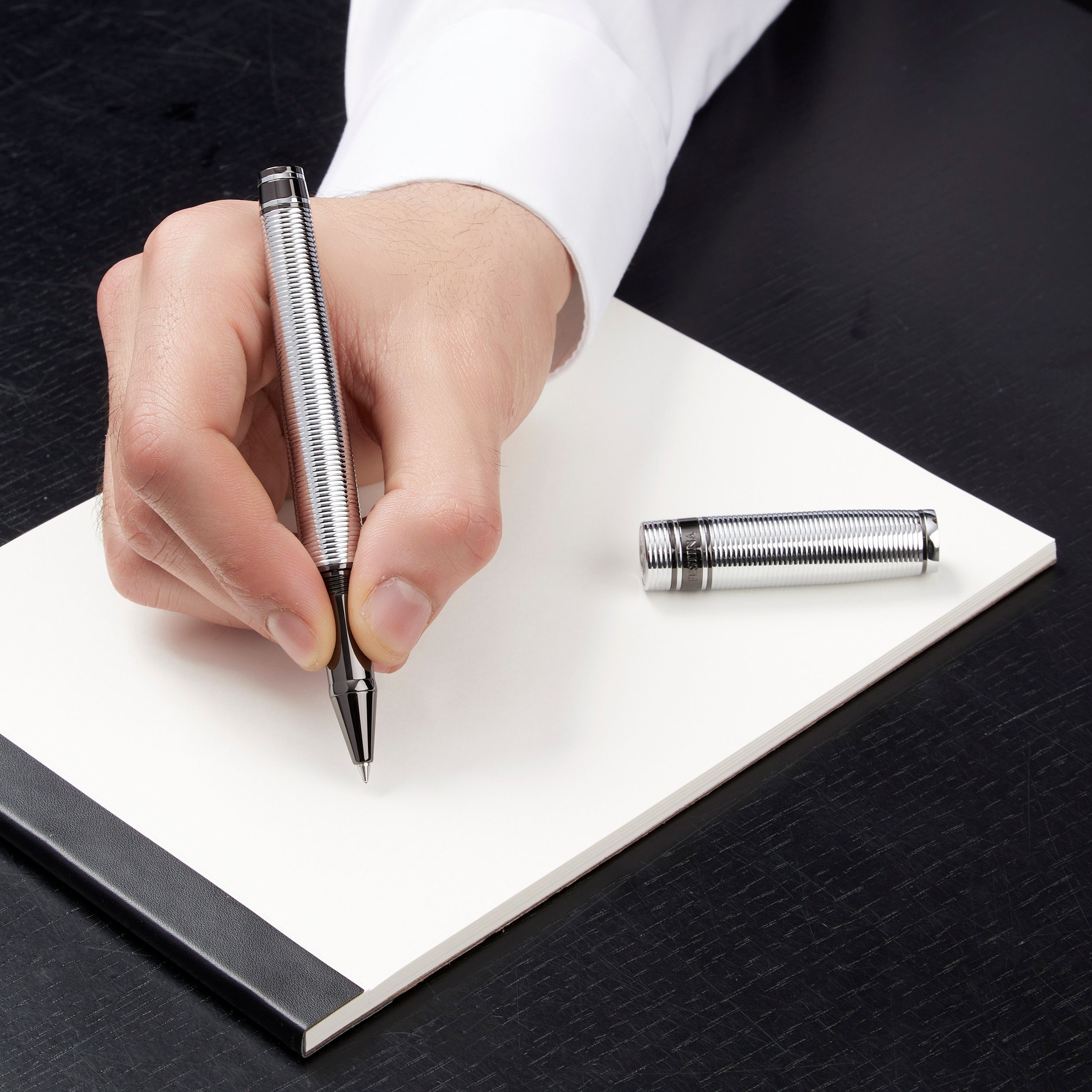 Nieco bardziej nieoczekiwana i wyrafinowana wersja naszej nowej kolekcji artykułów piśmiennych "Bold", ten artykuł piśmienny jest w całości wygrawerowany w poziome paski. Ta część asortymentu jest deklaracją stylu i elegancji sama w sobie i jest oferowana w 3 luksusowych kolorach powłoki metalowej: czarnym, pistoletowym i chromowanym Luksusowym. Gra z kontrastującymi kolorami, wykończeniami i wyrafinowanymi detalami jest kluczem do naszego procesu projektowania. Każdy element subtelnie uzupełnia inny, dając efekt, który jest zarówno elegancki, jak i niewymuszony.