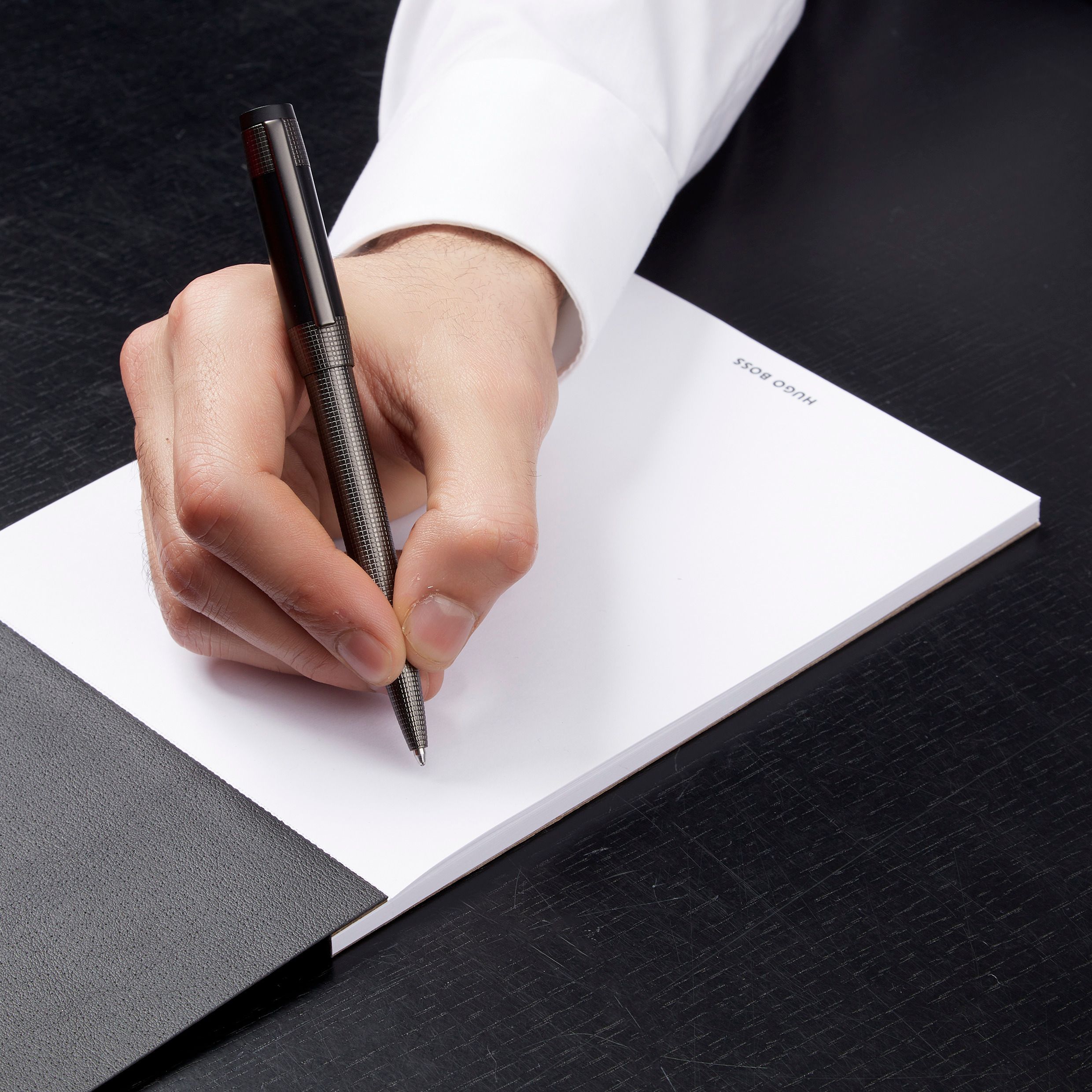 Zbudowane na smukłej, ale mocnej konstrukcji, długopisy Rive są zdefiniowane przez symetryczne elementy projektu i kontrastujące tekstury. Graficzna powierzchnia grawerowana w siatkę, pokryta matowym brązem, dodatkowo podkreśla nieoczekiwane linie, podczas gdy lekko powiększone logo jest wytłoczone na czarnym matowym lakierze.