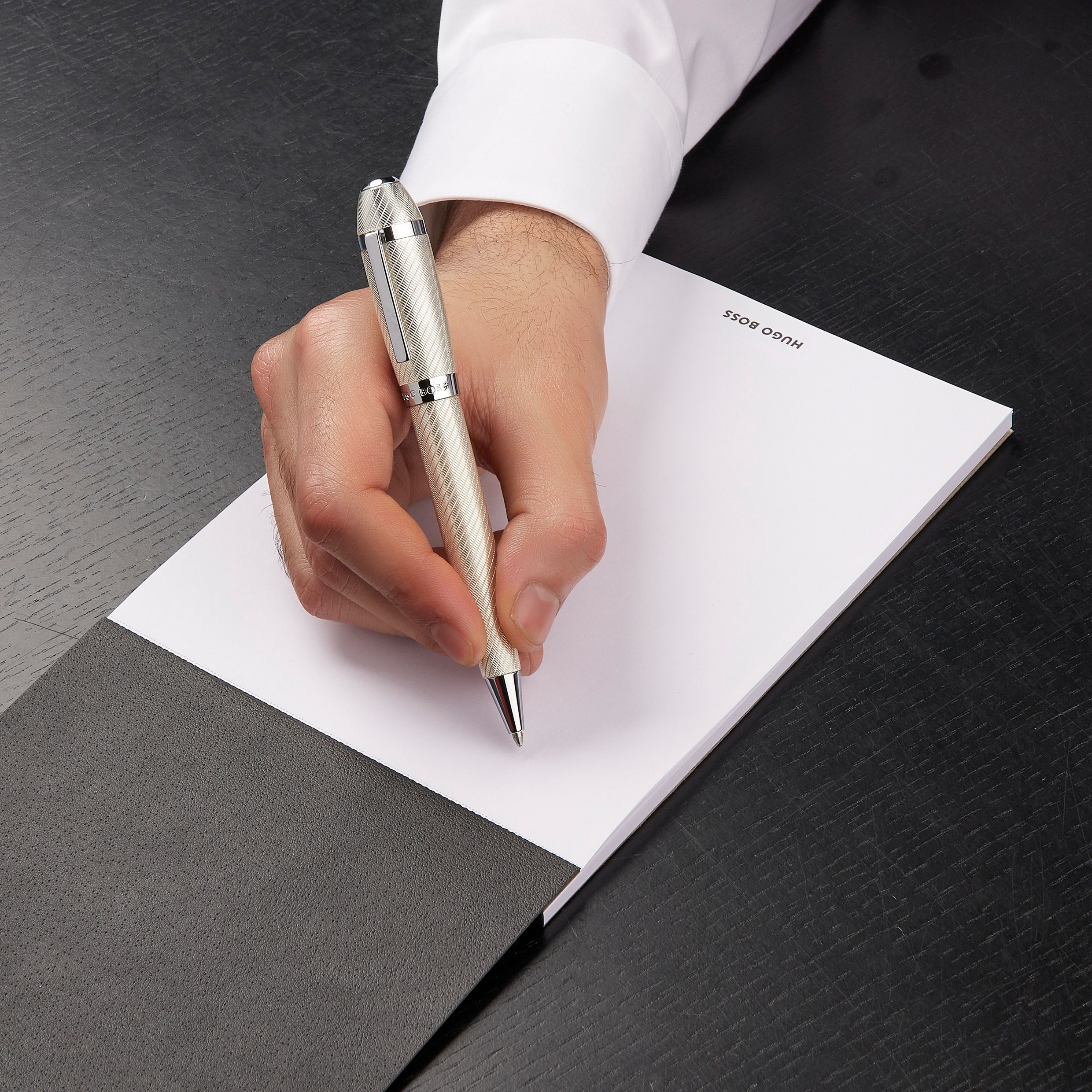 Zbudowana w oparciu o zmodernizowaną, nieco powiększoną edycję ponadczasowej sylwetki, ta wersja pióra Arc przemówi do prawdziwych miłośników pisania. Łączy w sobie ultranowoczesny, inspirowany architekturą grawerowany wzór, pokryty luksusowym lakierem zapewniającym gładkość w dotyku, z ponadczasowym, wyrazistym chromowaniem. chromem. To klasyka i wyrazistość jednocześnie. Ta linia jest dostępna w kolorze srebrnym lub pistoletowym, oba wykończone świecącymi chromowanymi wykończeniami.