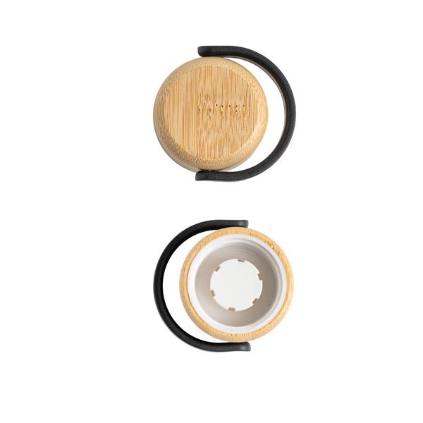 Tritanowa butelka o pojemności 1l z bambusową zakrętką i uchwytem. UWAGA: proszę nie stosowac do płynów o temparaturze powyżej 60 stopni oraz nie myć w zmywarce.