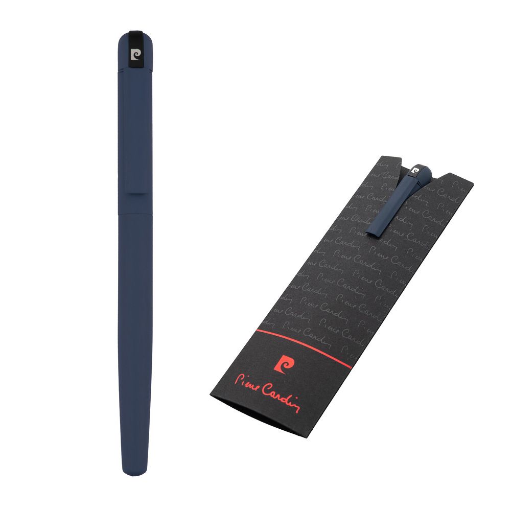 Pióro kulkowe z powierzchnią soft touch i dużym metalowym klipsem. Pióro zawiera nabój Schmidt® w kolorze niebieskim, z końcówką 0,6 mm. Pióro zapakowane w eleganckie etui, posiada certyfiat autentyczności Pierre Cardin.