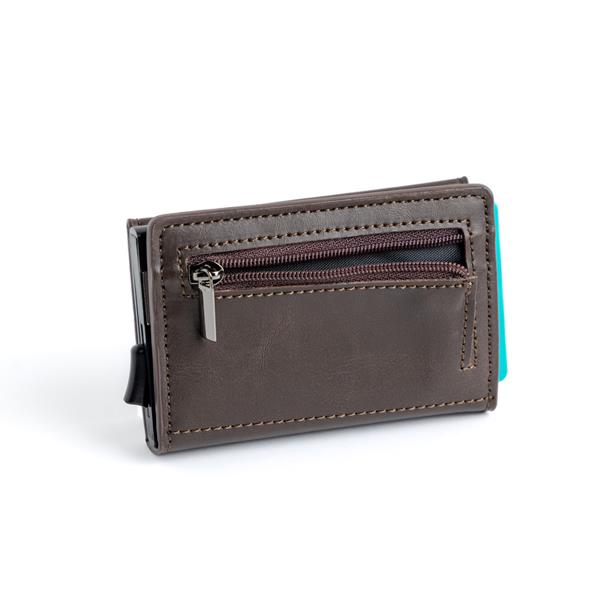 Portfel na karty i monety z ochroną RFID. Ten portfel może przechowywać do 6 kart, do których dostęp można uzyskać za pomocą jednego kliknięcia. Oferuje ochronę RFID. Wewnątrz znajduje się przegroda na banknoty oraz dwie dodatkowe przegrody. Posiada również kieszonkę na monety. Dostępny w kolorze czarnym i brązowym.