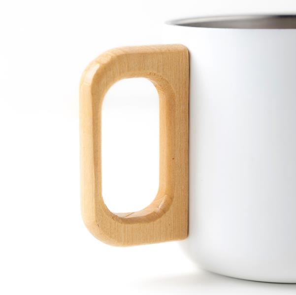 Kubek ze stali nierdzewnej o pojemności 350 ml z podwójną ścianką i drewnianym uchwytem. Kubek ten idealnie nadaje się do delektowania się gorącymi napojami, dzięki konstrukcji z podwójnymi ściankami, która dłużej utrzymuje temperaturę. Połączenie materiałów łączy w sobie elementy rustykalne i eleganckie, dzięki czemu jest to wyrafinowany i niepowtarzalny prezent. Dzięki pojemności 350 ml dodaje szczególnego akcentu delektowaniu się ulubionym napojem, łącząc w sobie funkcjonalność i styl.
