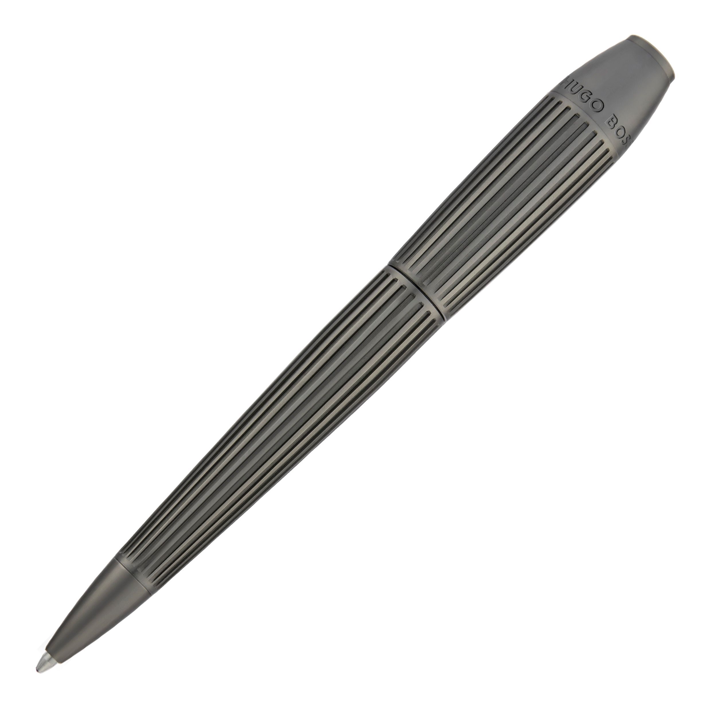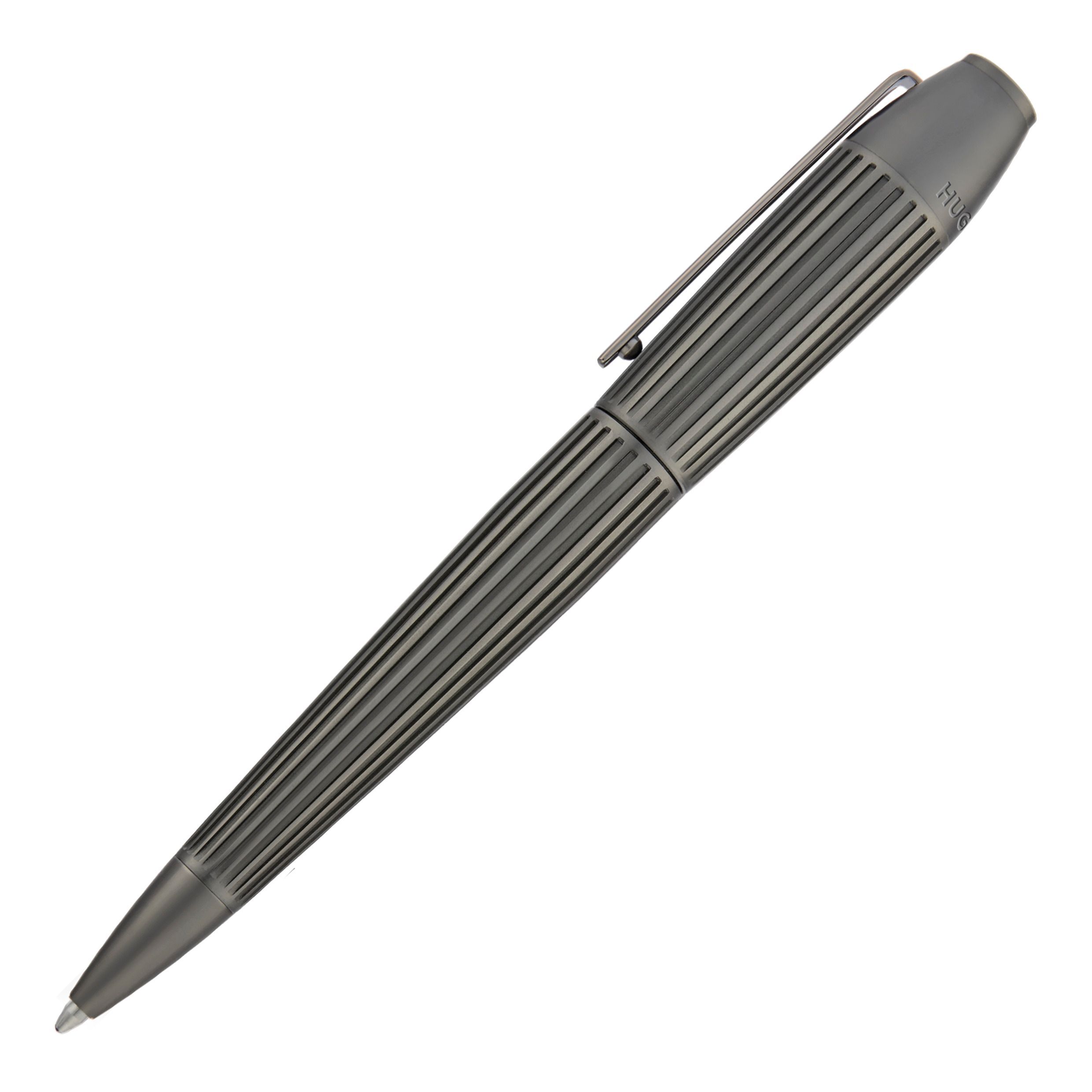 Ten kształt zapewnia idealną równowagę między siłą i elegancją, charakteryzując się głębokim, ponadwymiarowym wzorem w prążki. Pokryty luksusowym matowym odcieniem brązu, element emanuje minimalistycznym, ale skomplikowanym i wyrafinowanym charakterem. Skrupulatne rzemiosło i subtelne detale sprawiają, że jest on zarówno cenny, jak i dyskretny. Jego konstrukcja prezentuje odważną współczesną estetykę, co skutkuje uderzającym instrumentem piśmiennym.