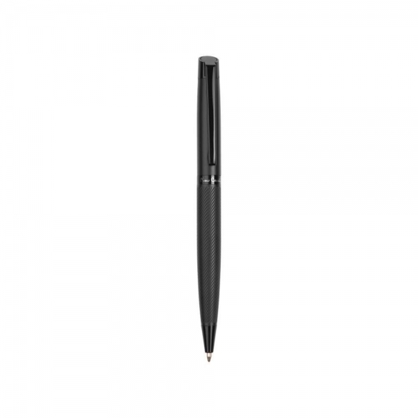Elegancki metalowy długopis Pierre Cardin. Długopis posiada mechanizm obrotowy, a dolna część korpusu ozdobiona jest strukturalnym wzorem. Posiada wysokiej jakości niebieski wkład z końcówką 1 mm. Zapakowany w luksusową kieszeń, posiada certyfikat autentyczności.