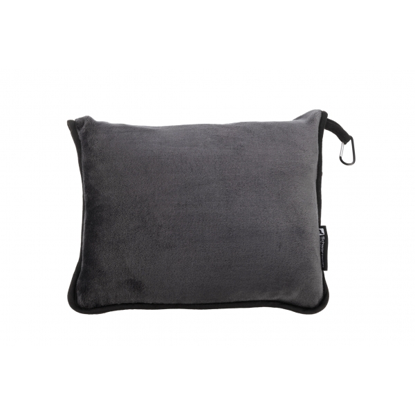 Polarowy koc podróżny Schwarzwolf 2w1, który można wykorzystać jako kocyk lub złożyć w poszewkę wykonaną z tego samego materiału i zamienić go w wygodną poduszkę. Pokrowiec na złożony koc posiada karabińczyk umożliwiający przypięcie go do bagażu.