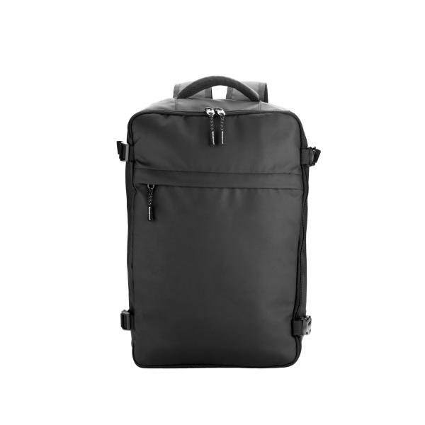 Plecak przypomina walizkę podróżną. Posiada wewnętrzną komorę, która zawiera dużą kieszeń z siatki zapinaną na zamek, na zewnątrz plecaka znajduje się przednia kieszeń zapinana na zamek, kieszeń zapinana na zamek z tyłu plecaka oraz pasek. Plecak posiada watowane plecy i szelki.